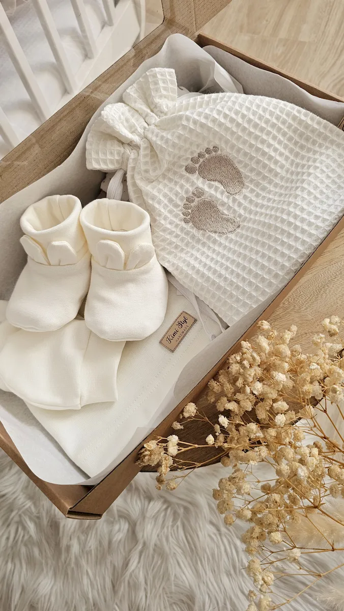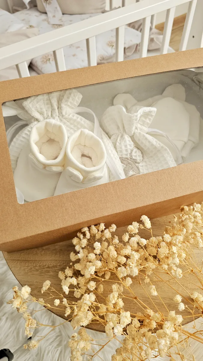 Box prezentowy niemowlęcy w kartonie z okienkiem – wyjątkowy zestaw na pierwsze chwile maluszka