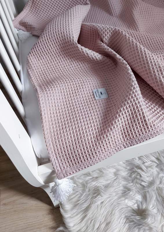 Kocyk wafelkowy z chwostami BRUDNY RÓŻ
