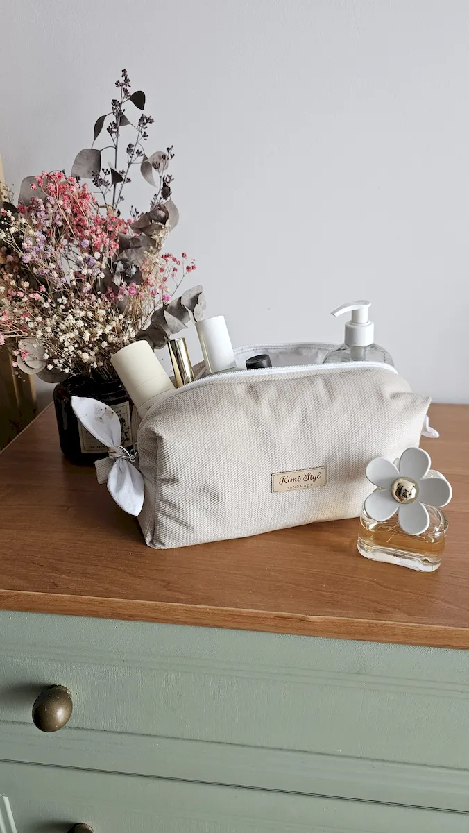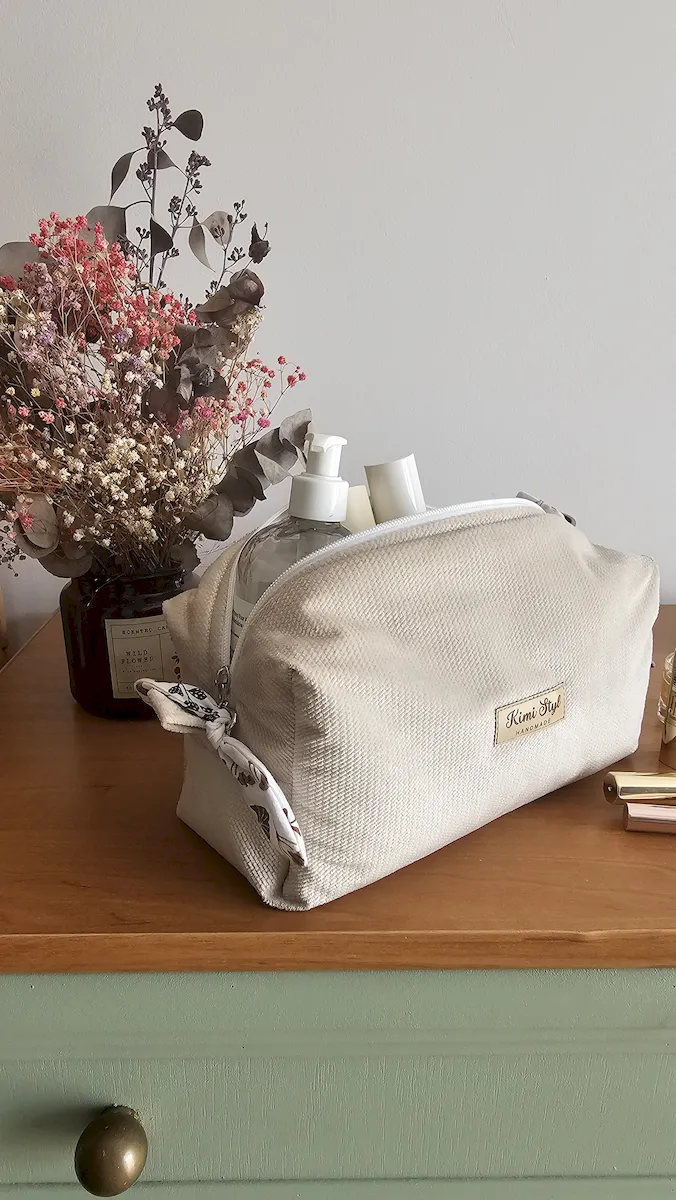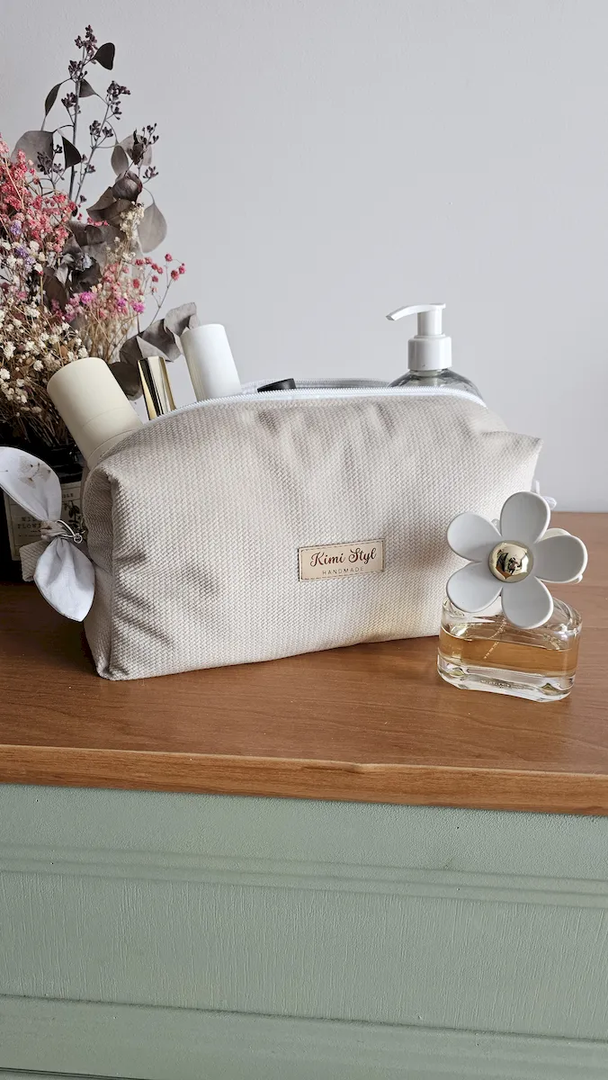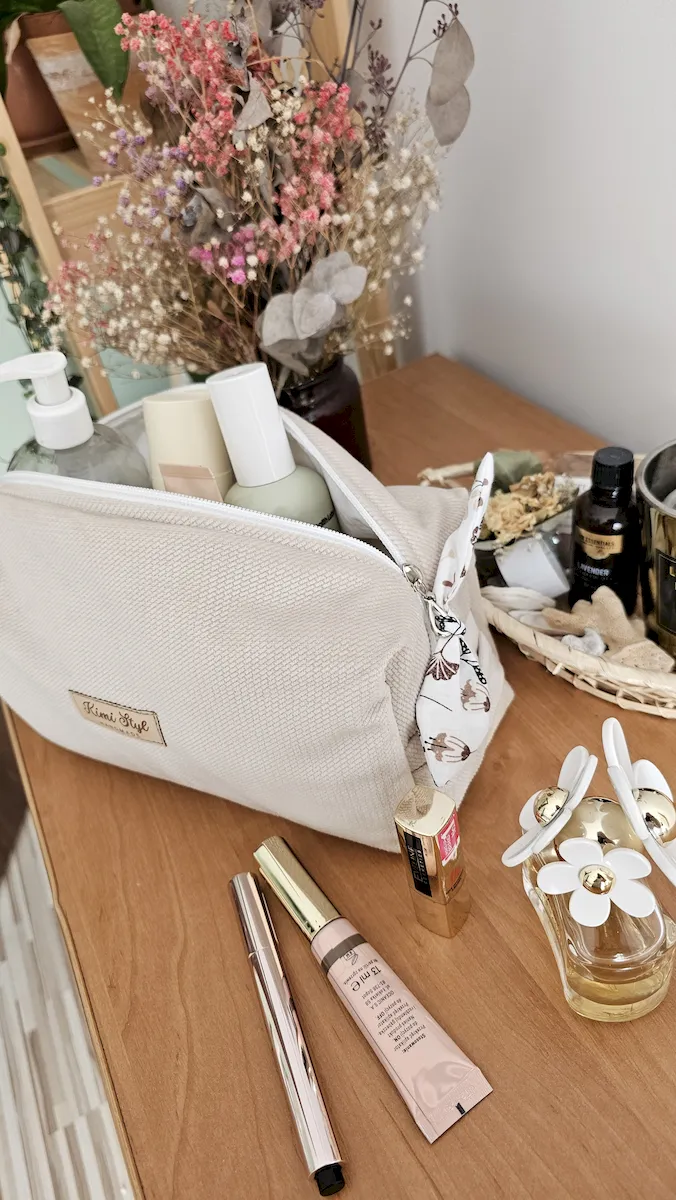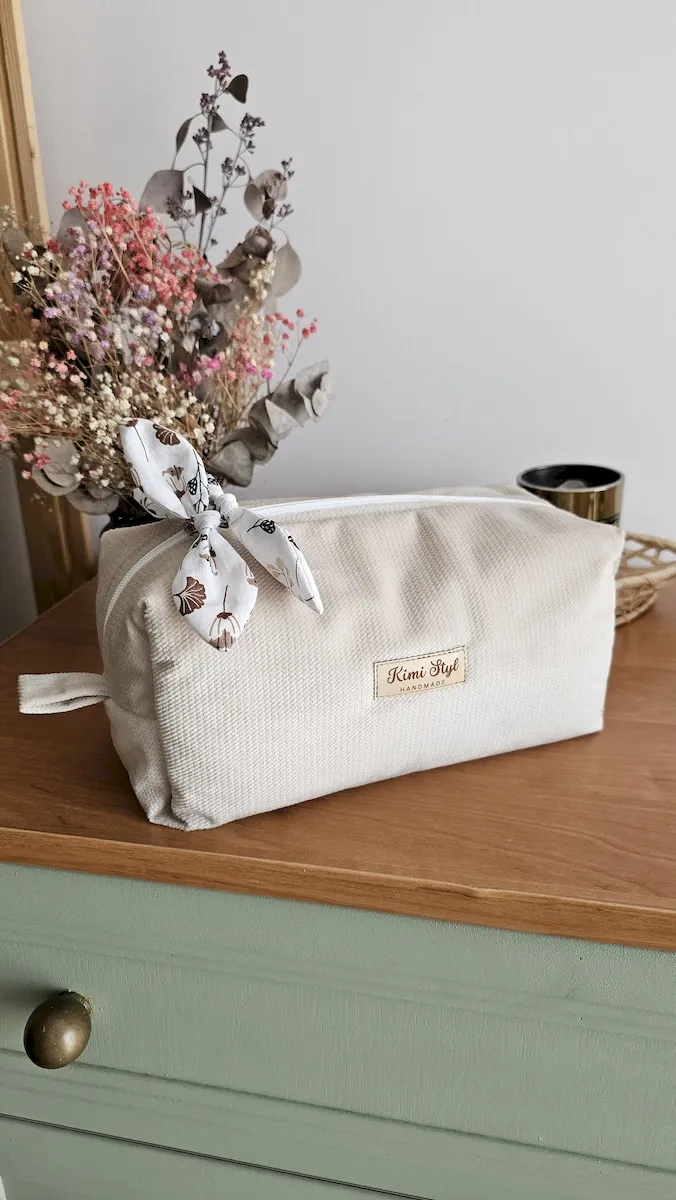 Na zdjęciu znajduje się kosmetyczka w rozmiarze L velvet naturalny