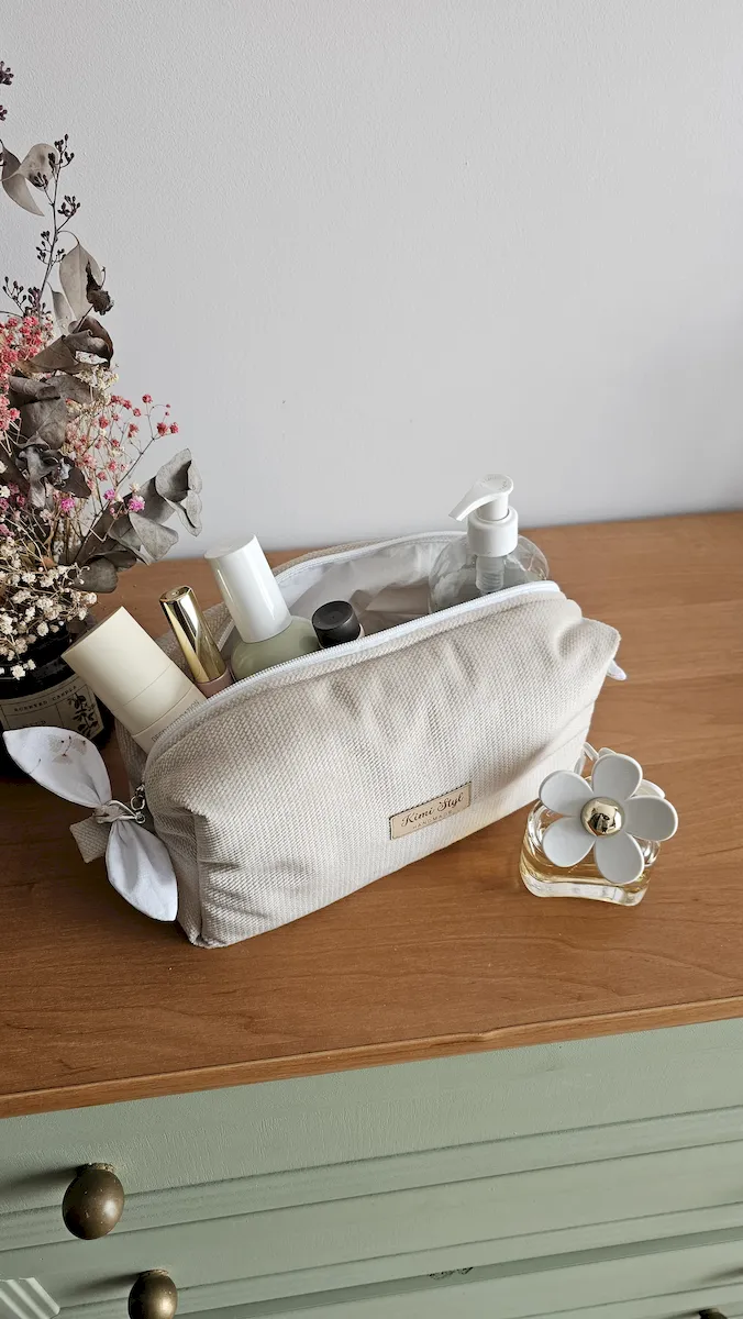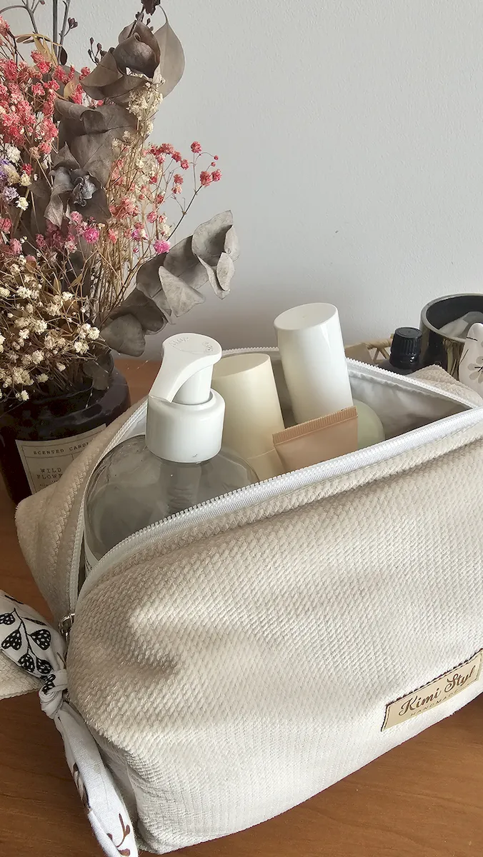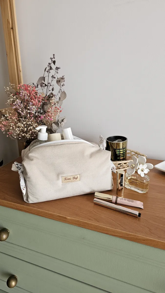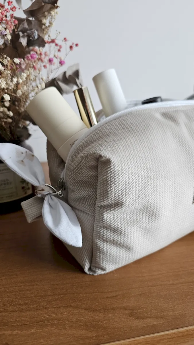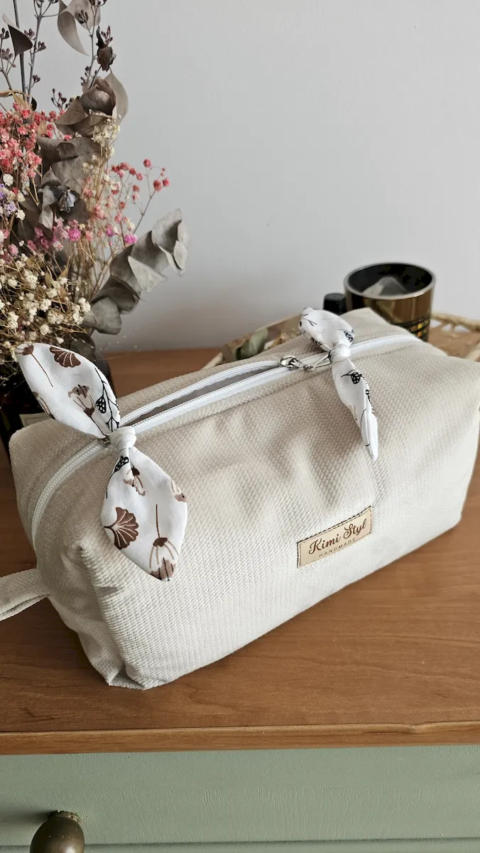 Na zdjęciu znajduje się kosmetyczka w rozmiarze L velvet naturalny