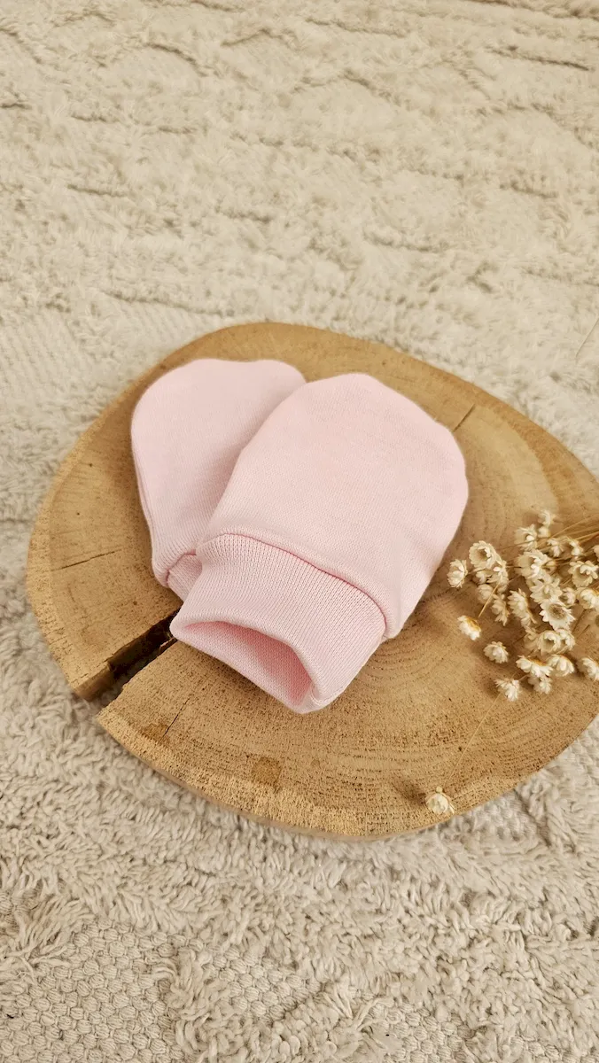 Łapki niedrapki z miękkiej bawełny – delikatna ochrona dla maluszka PUDROWY RÓŻ