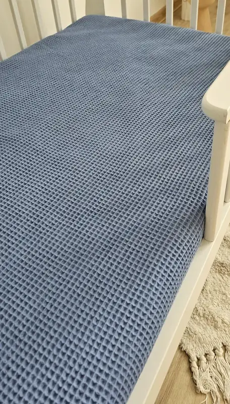 Miękkie prześcieradło do łóżeczka wafel na gumkę JEANS