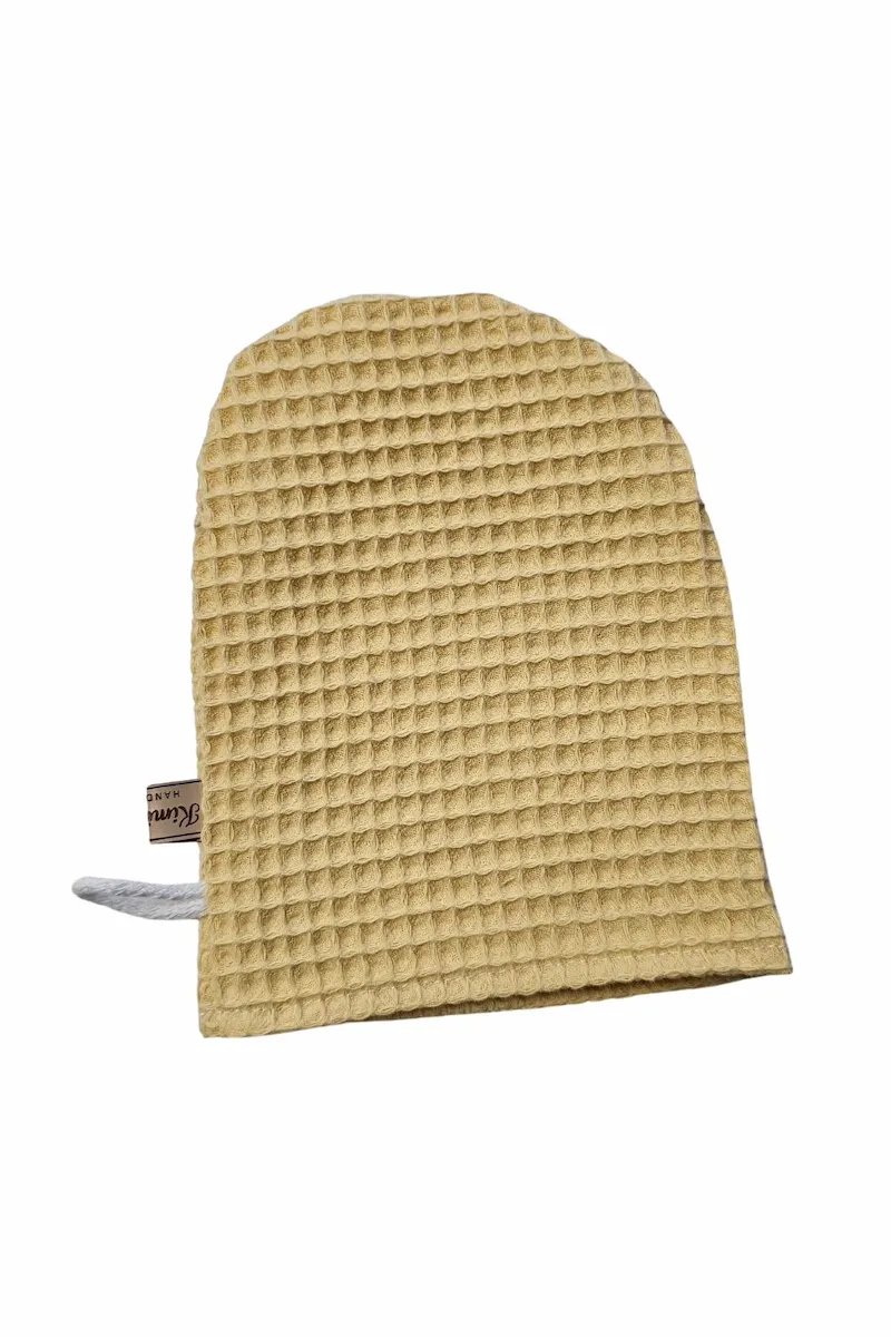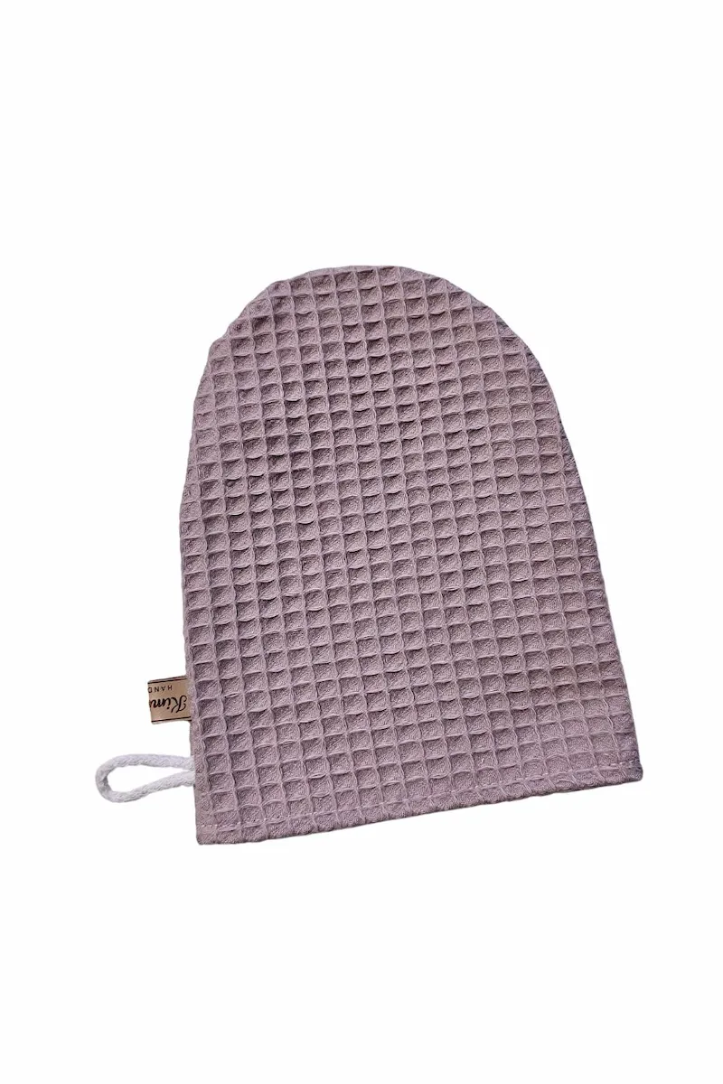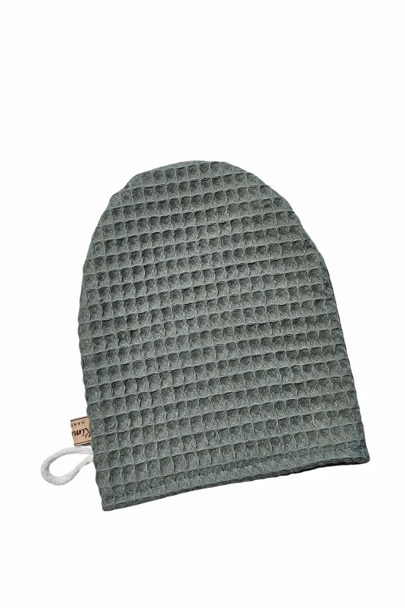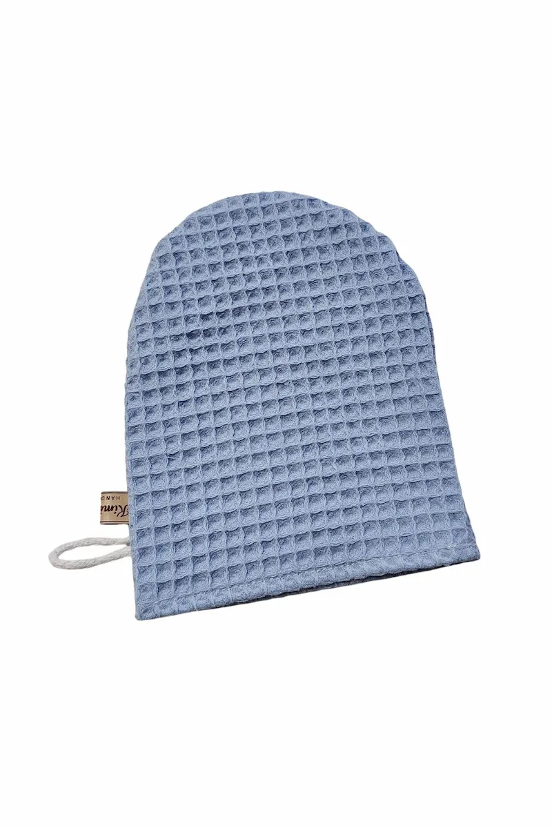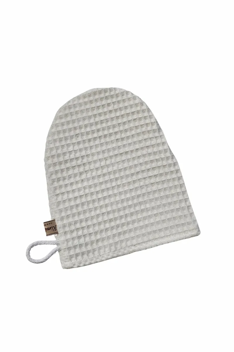 Myjka wafelkowa uszyta w 100% z naturalnej bawełny z certyfikatem OEKO-TEX® Standard 100. Bezpieczna dla delikatnej skóry niemowląt i wystarczająco łagodna do codziennej pielęgnacji twarzy mamy.