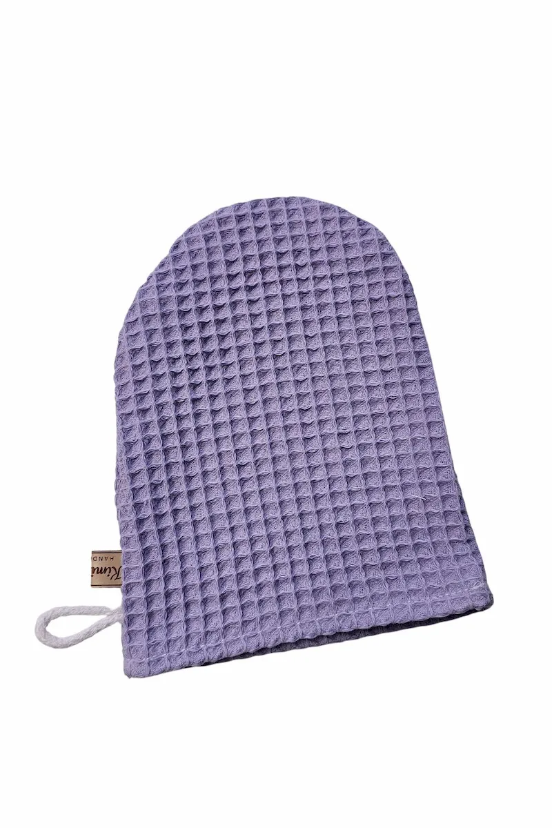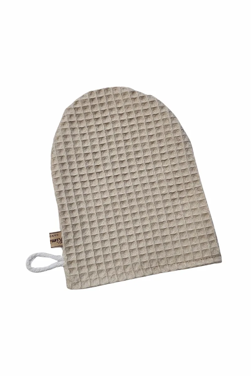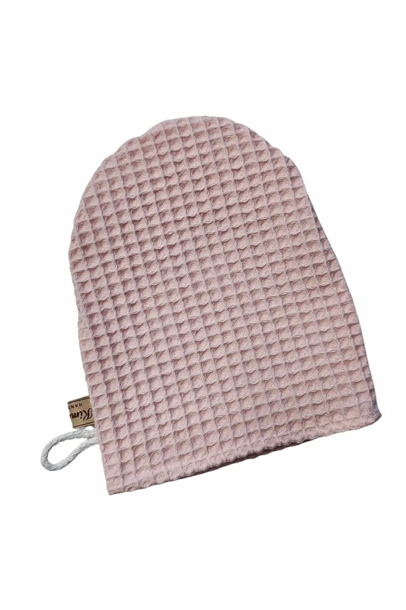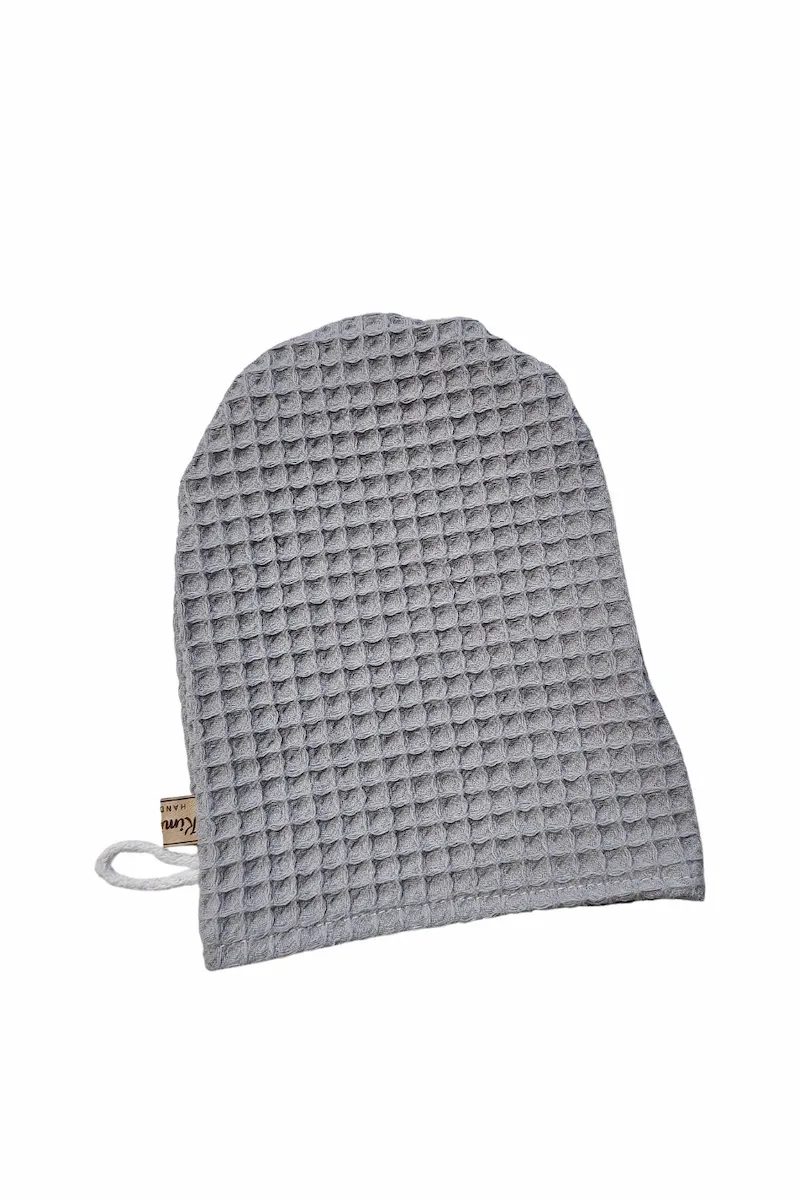 Myjka wafelkowa uszyta w 100% z naturalnej bawełny z certyfikatem OEKO-TEX® Standard 100. Bezpieczna dla delikatnej skóry niemowląt i wystarczająco łagodna do codziennej pielęgnacji twarzy mamy.