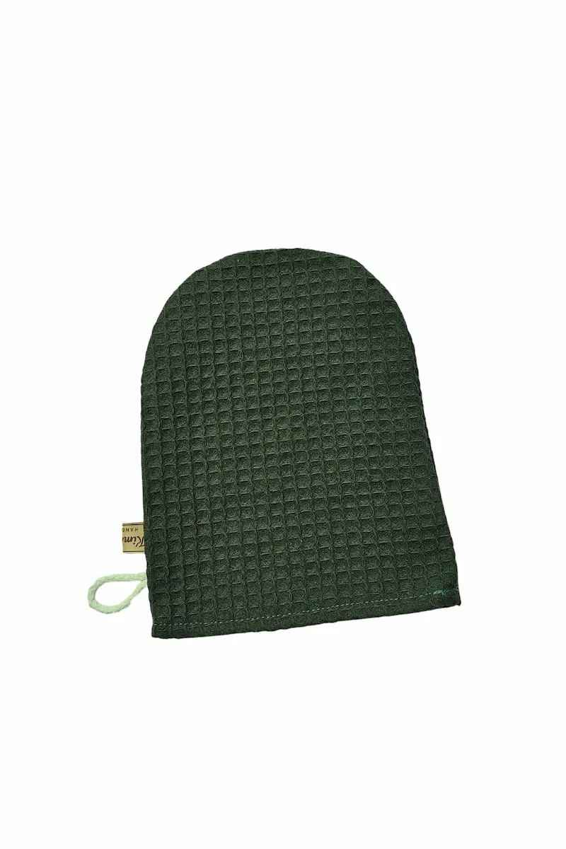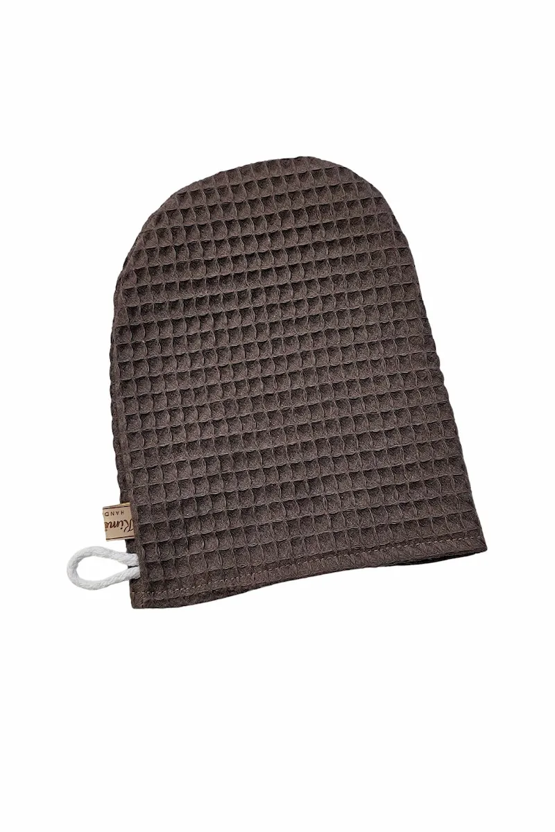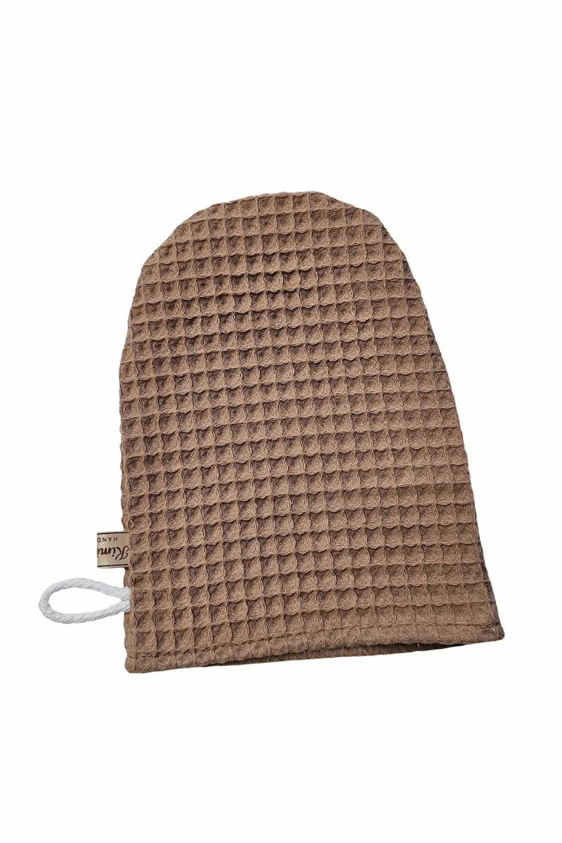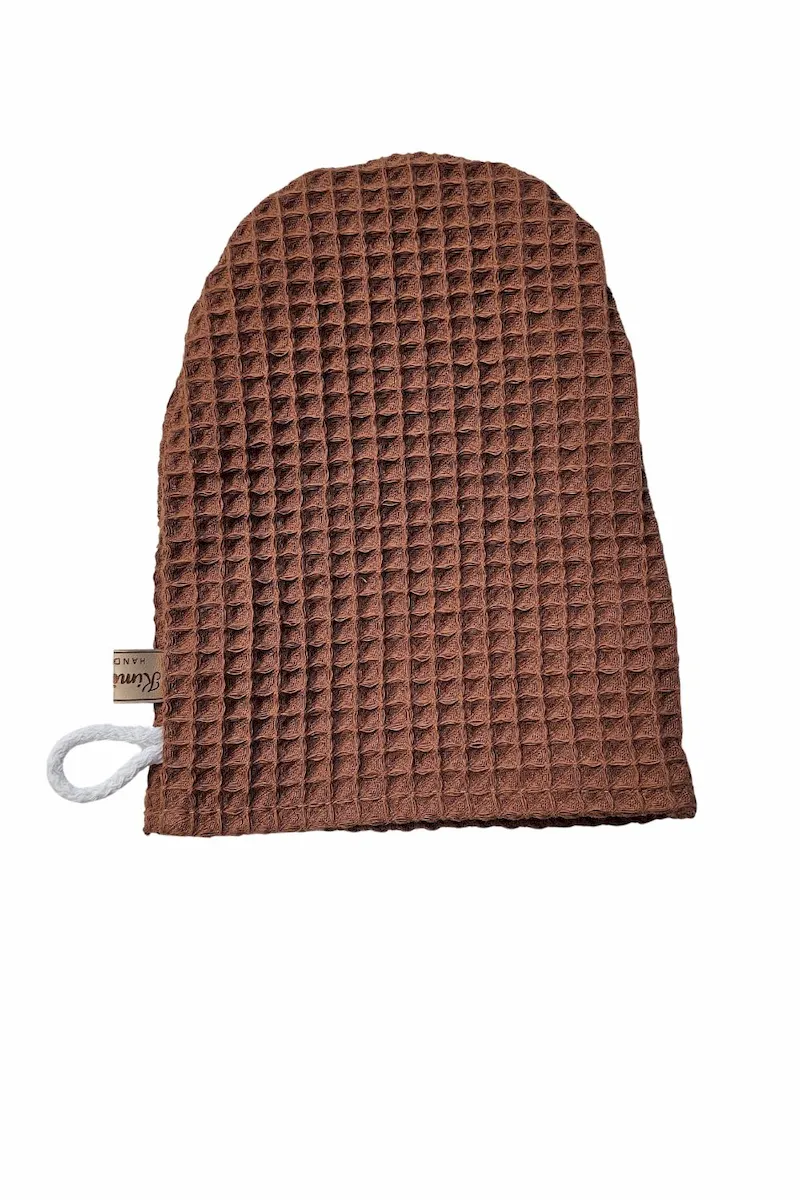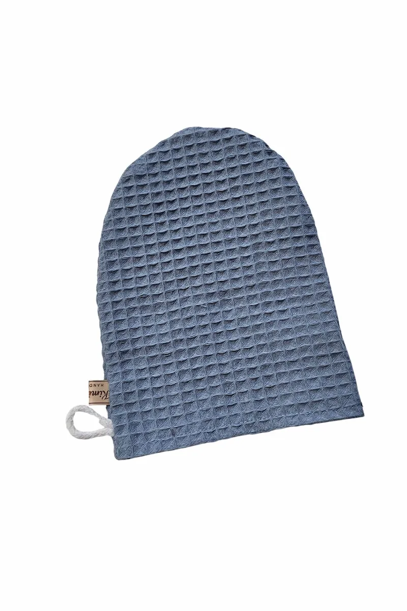 Myjka wafelkowa uszyta w 100% z naturalnej bawełny z certyfikatem OEKO-TEX® Standard 100. Bezpieczna dla delikatnej skóry niemowląt i wystarczająco łagodna do codziennej pielęgnacji twarzy mamy.