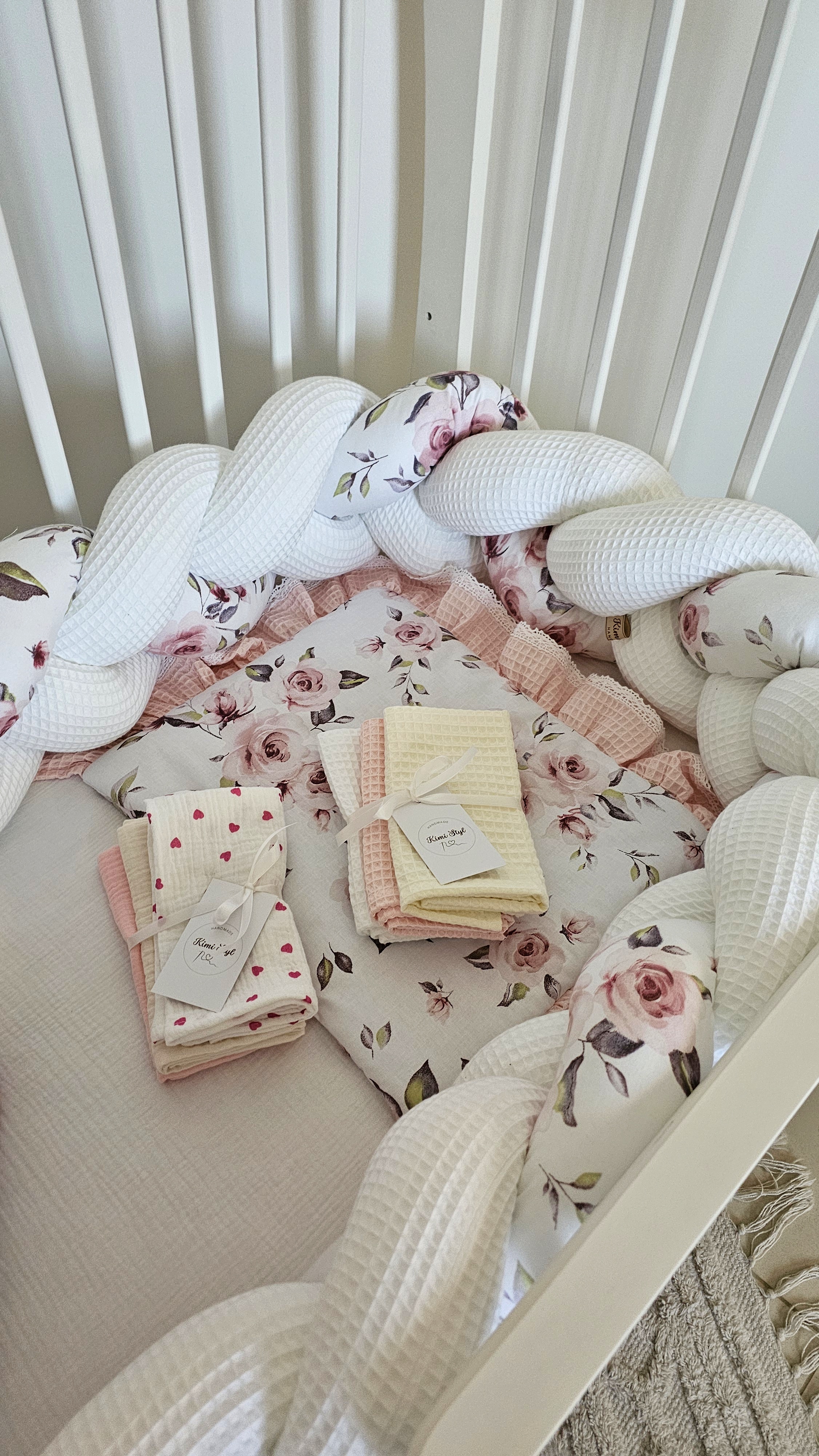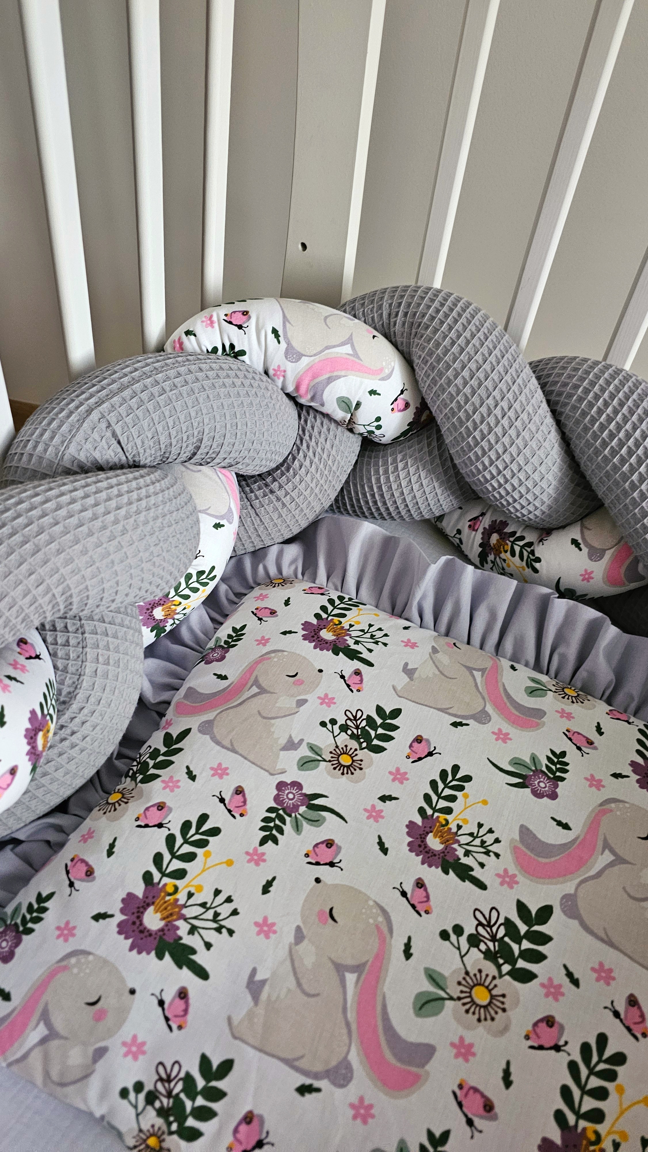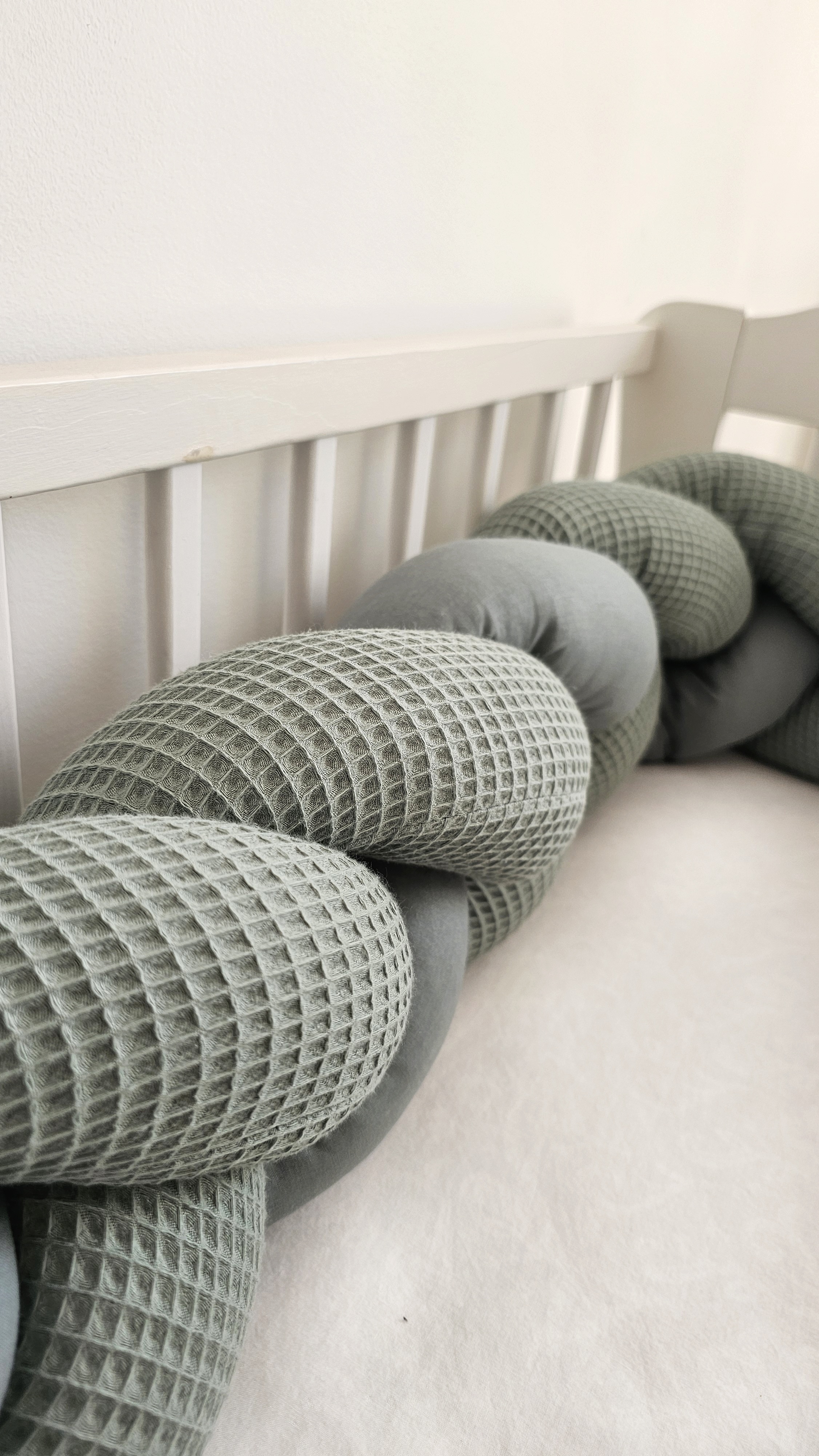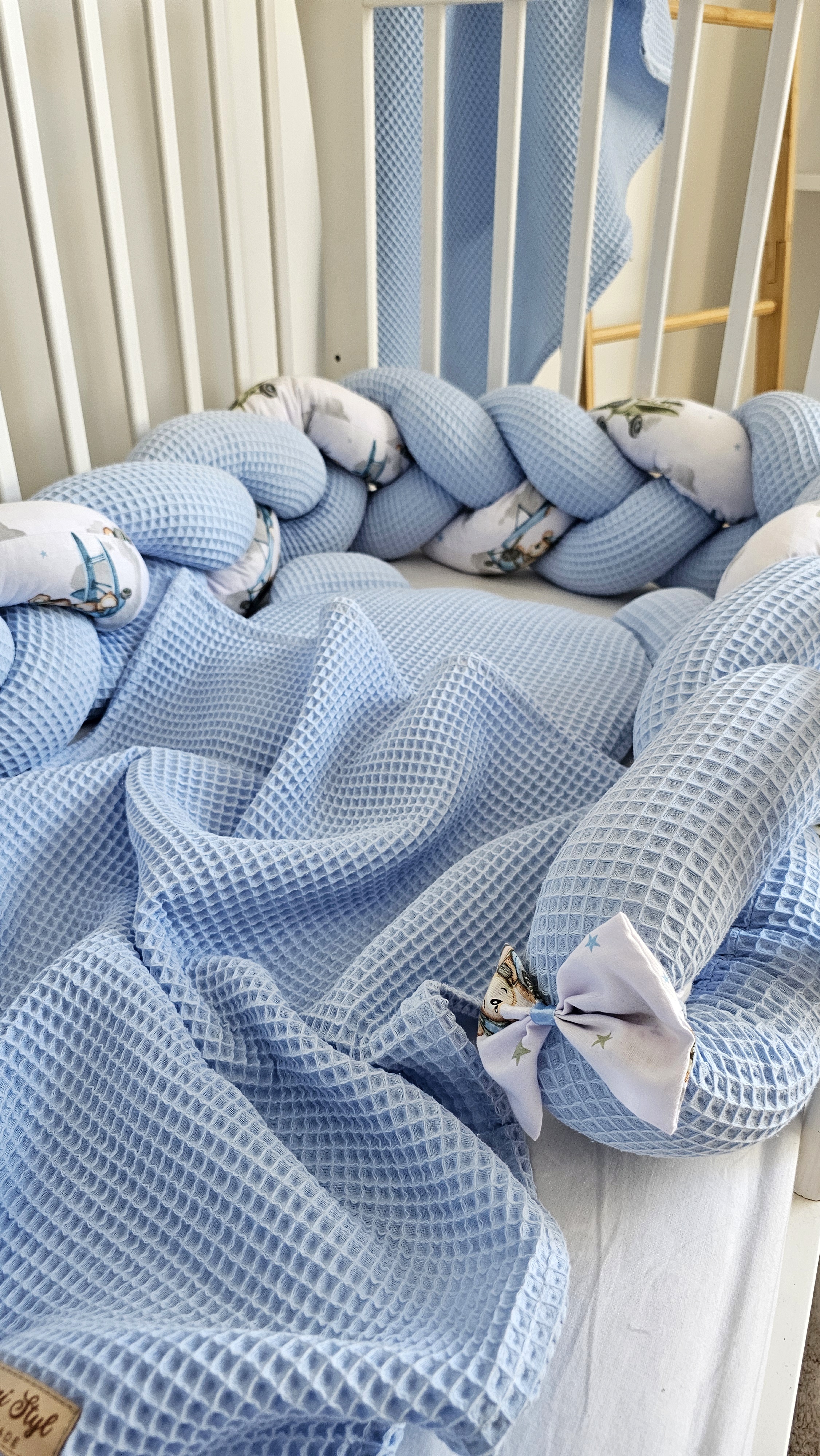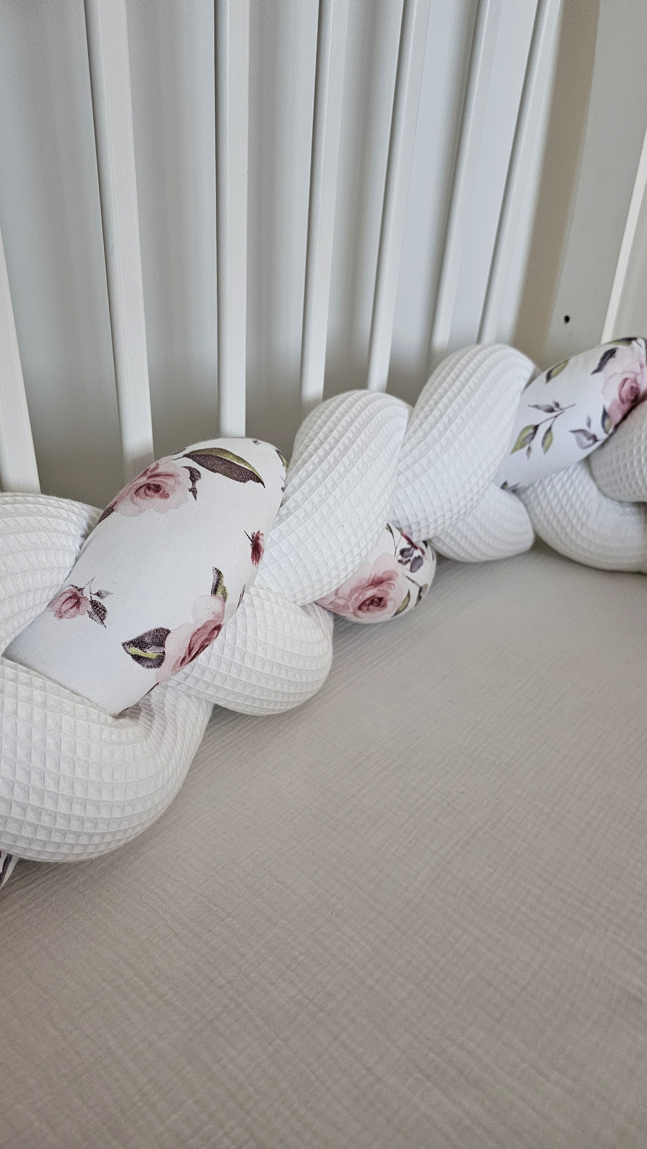 Ręcznie wykonany ochraniacz do łóżeczka w postaci warkocza to nie tylko ochrona dla dziecka, ale również przepiękna ozdoba dekoracja jego łóżeczka.