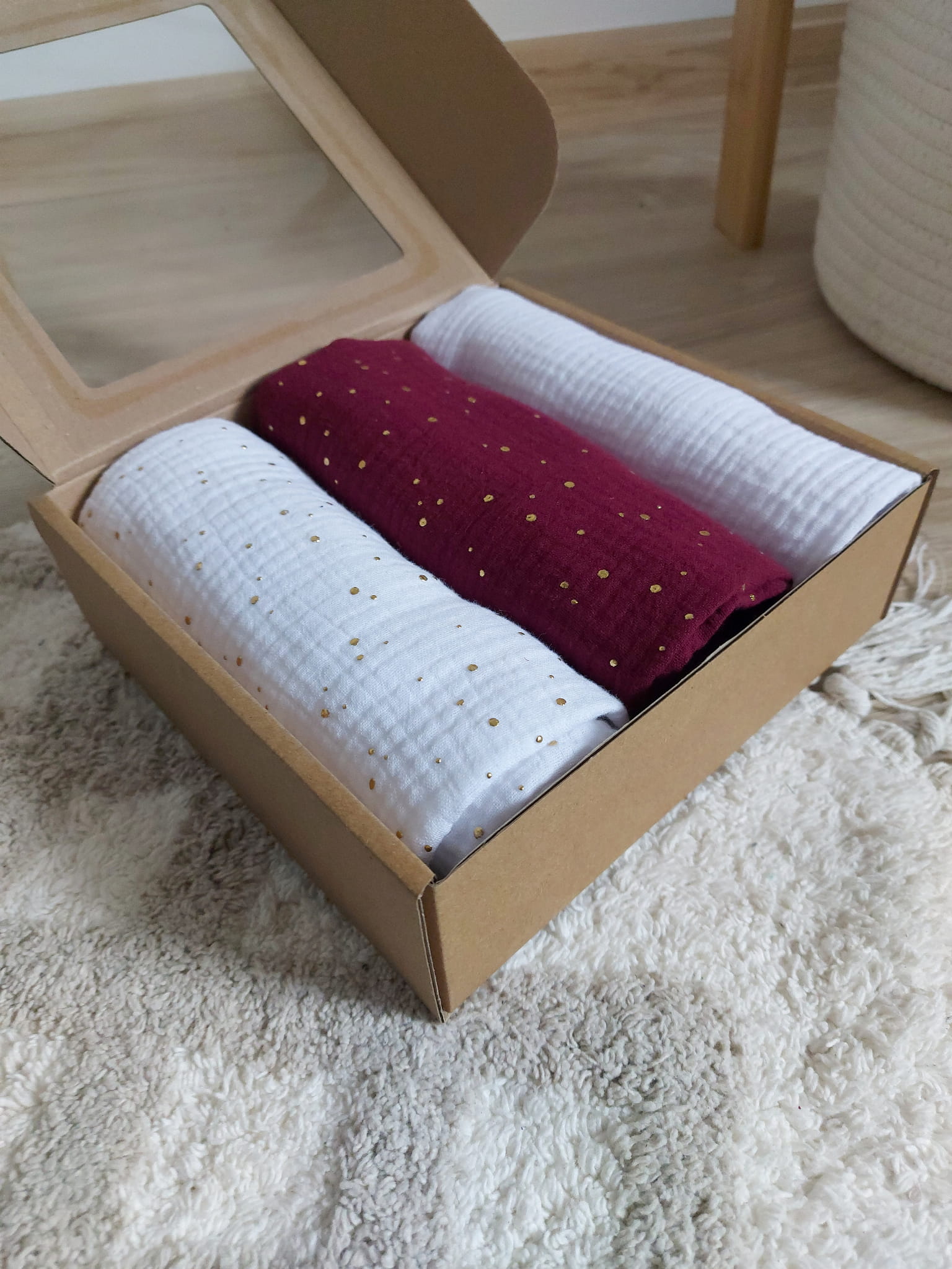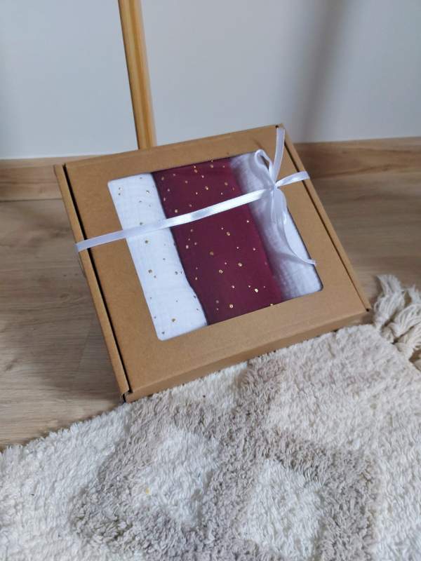 Pieluszka muślinowa 3-pak biały-bordo-biały
