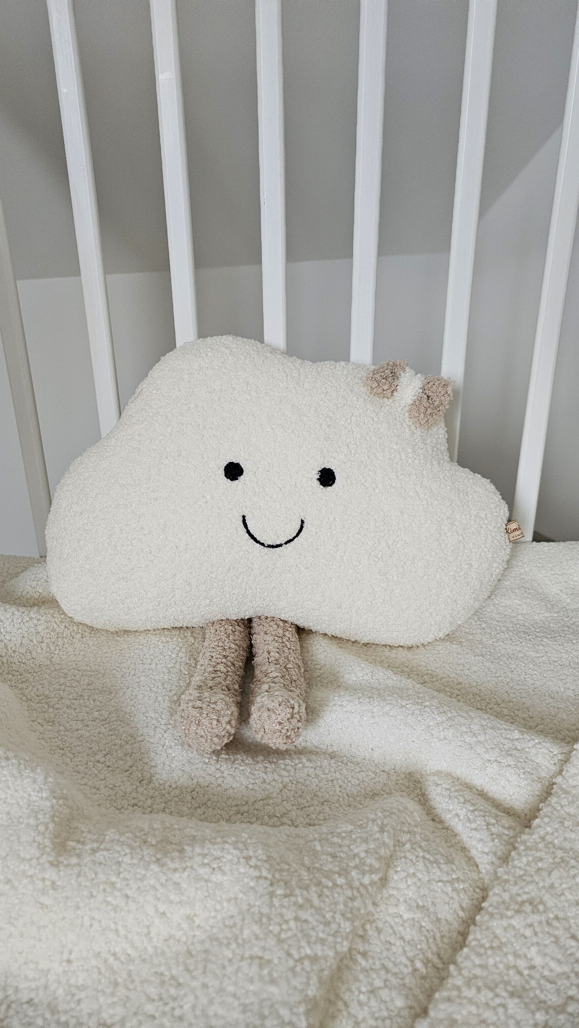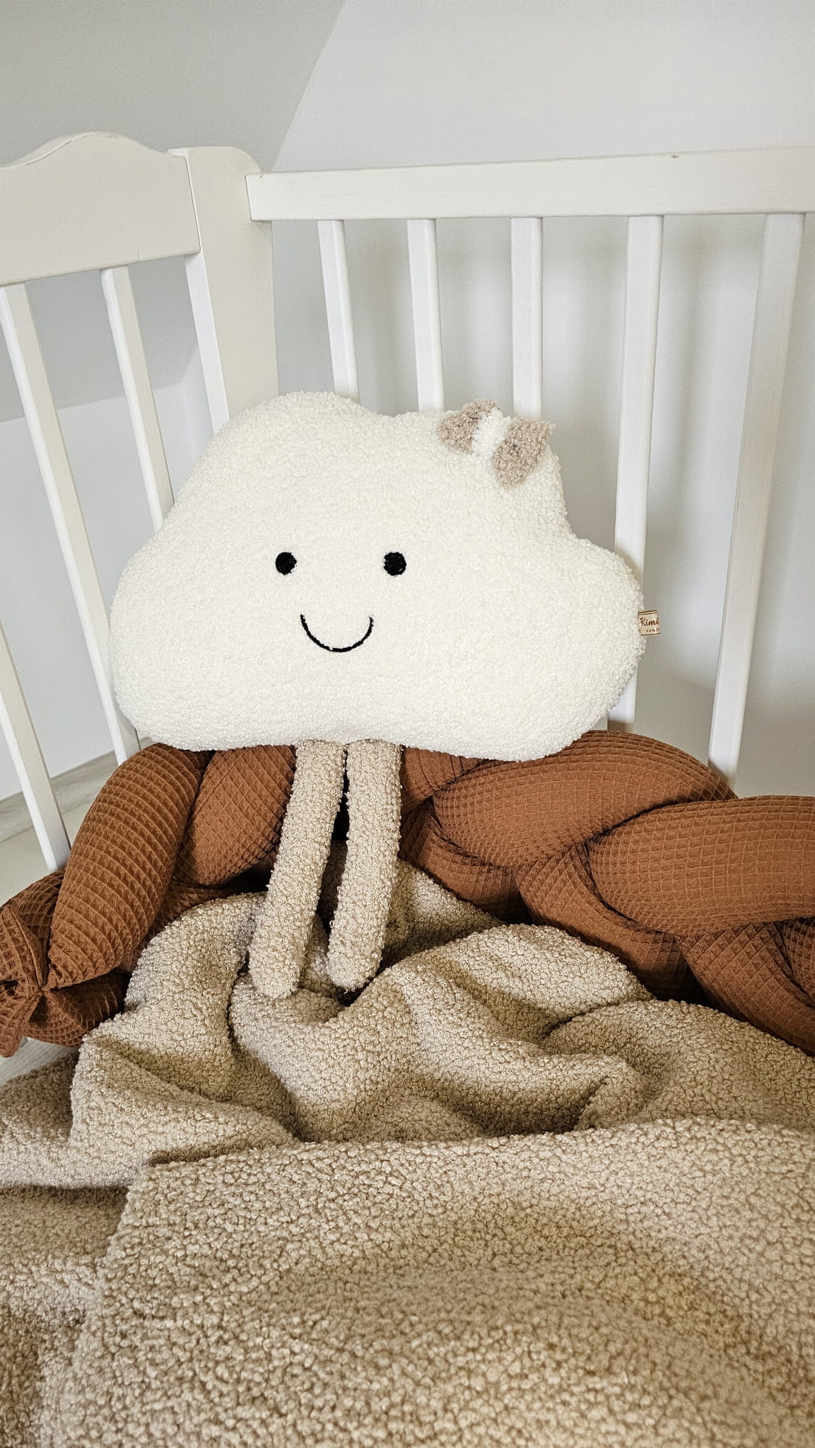 Ta chmurka nie jest zwykłą poduszką — to symbol dzieciństwa, beztroski i czułości, który pięknie dopełnia wnętrze pokoju maluszka.