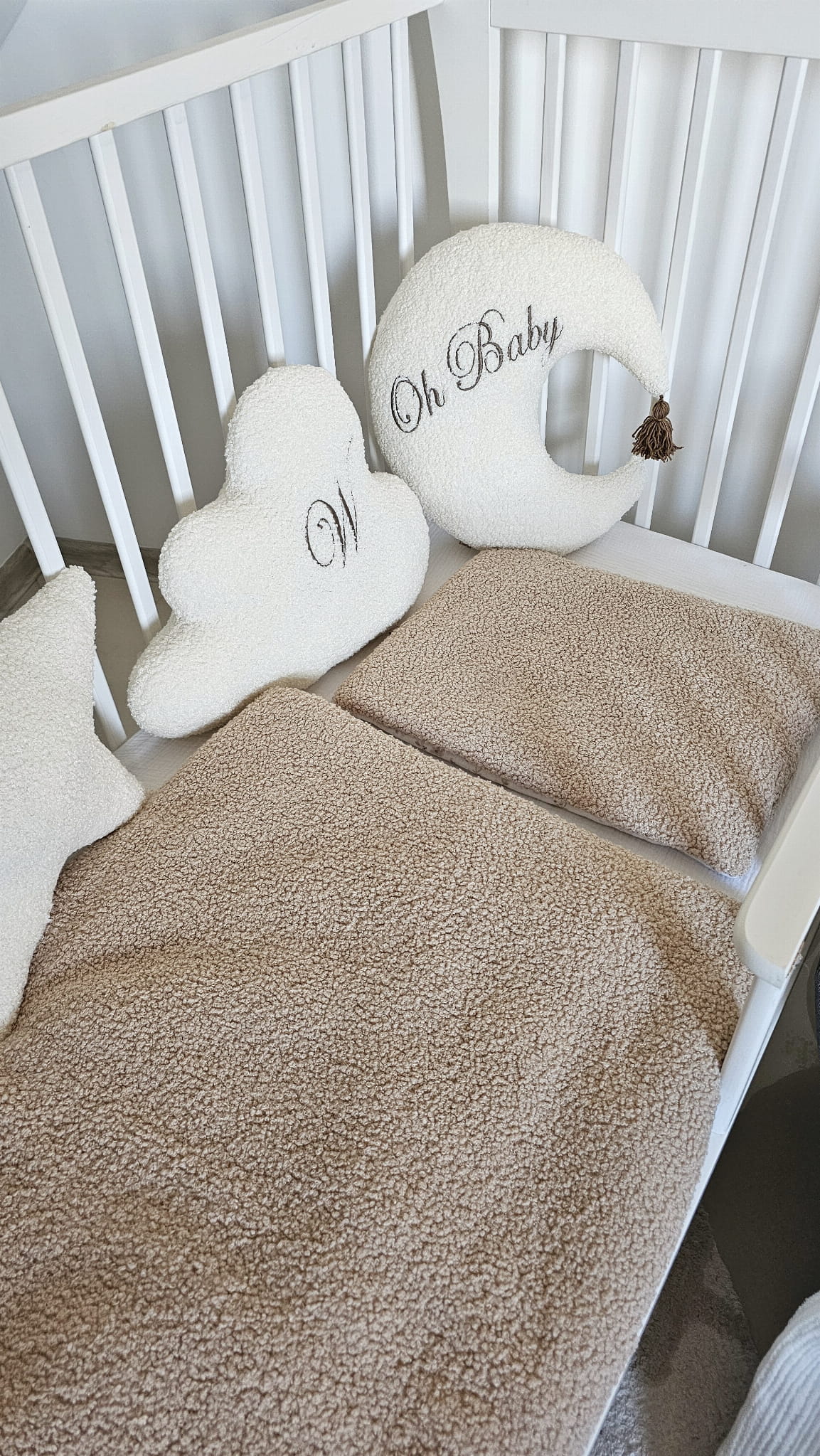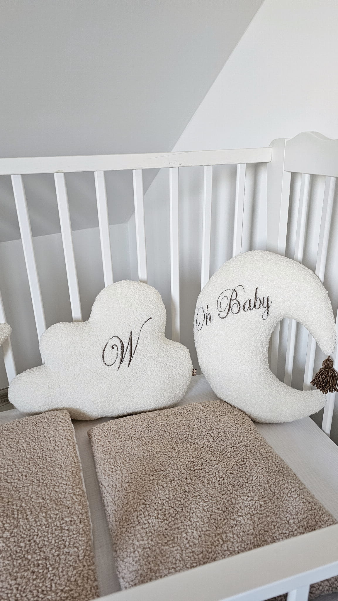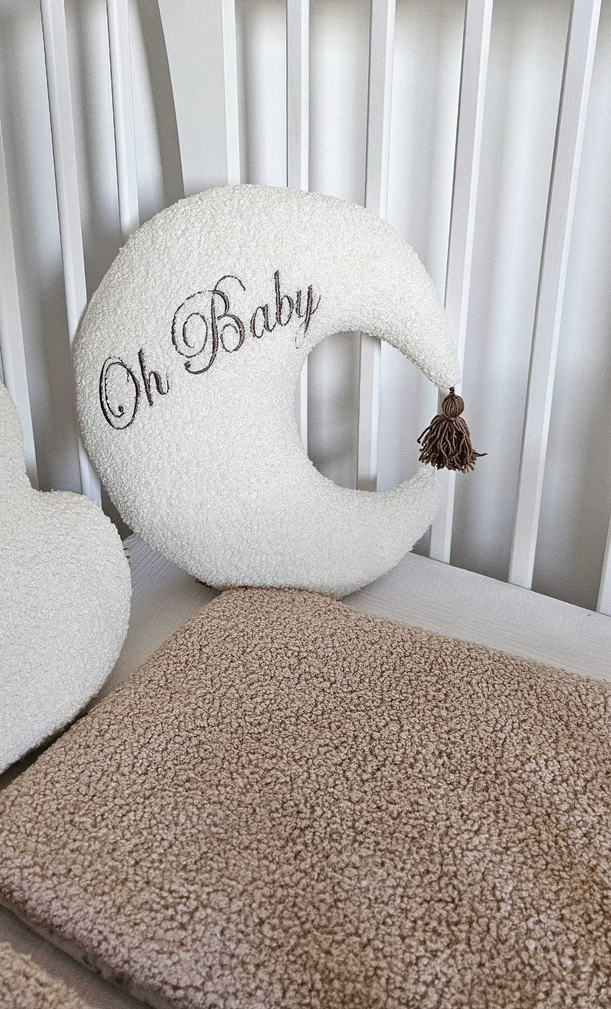 Uroku dodaje jej elegancki haftowany napis „Oh baby” oraz uroczy chwost, dzięki którym Księżyc staje się nie tylko dekoracją, ale także wyjątkową pamiątką z pierwszych miesięcy życia maluszka.