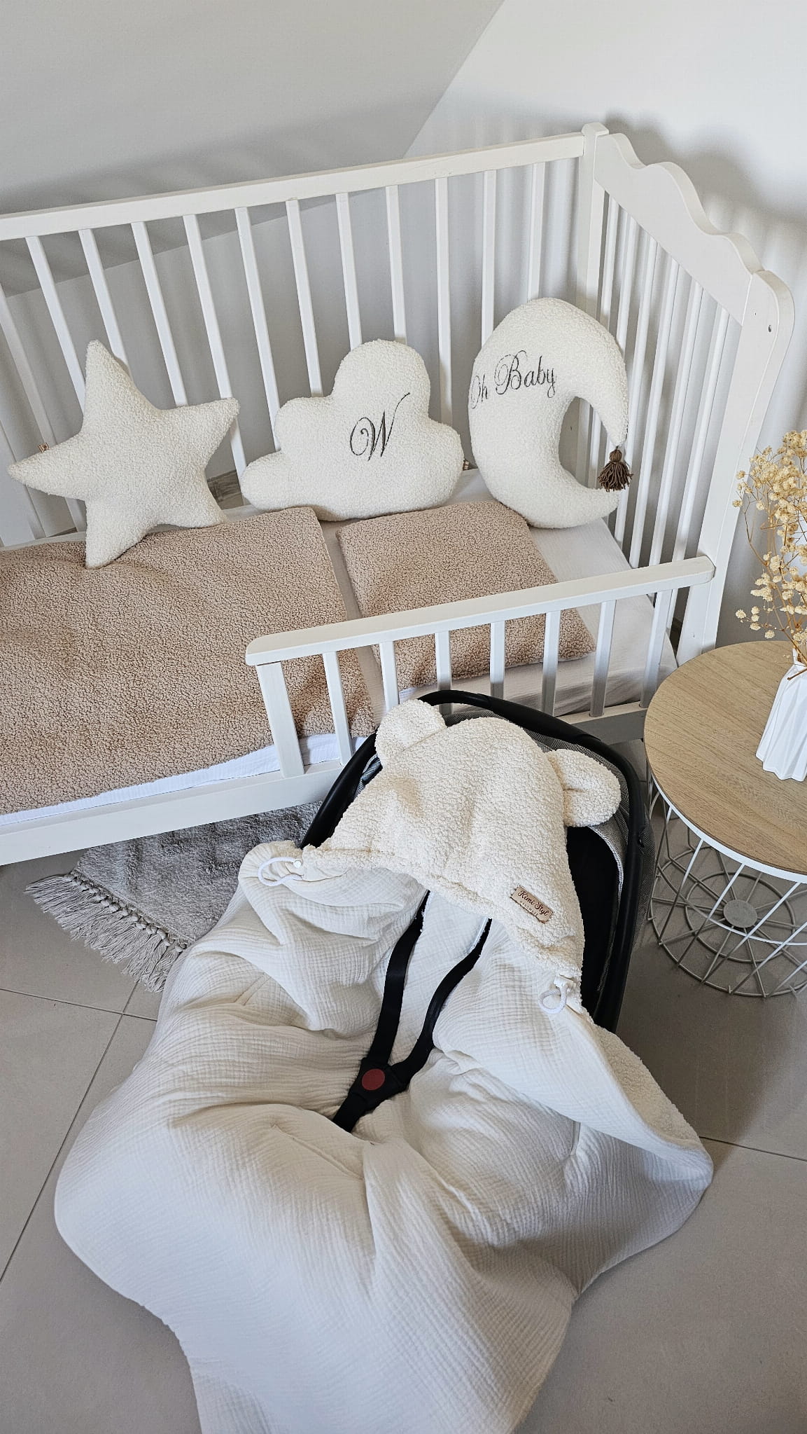- Mięciutki, bezpieczny materiał boucle – idealny dla delikatnej skóry dziecka.