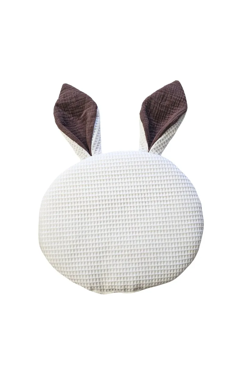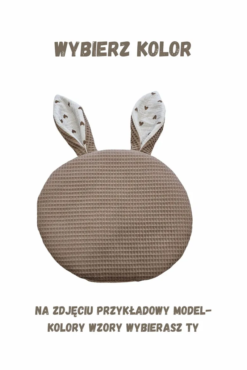Poduszka w kształcie królika została uszyta z 100% bawełny w kszałcie gofra, wafla.