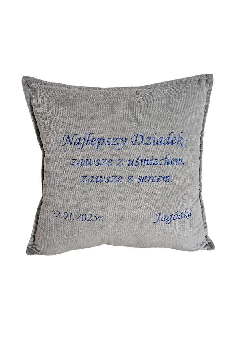 Zaskocz swojego Dziadka prezentem, który wyrazi wszystkie Twoje uczucia – poduszka z haftem to gest, który z pewnością go wzruszy!