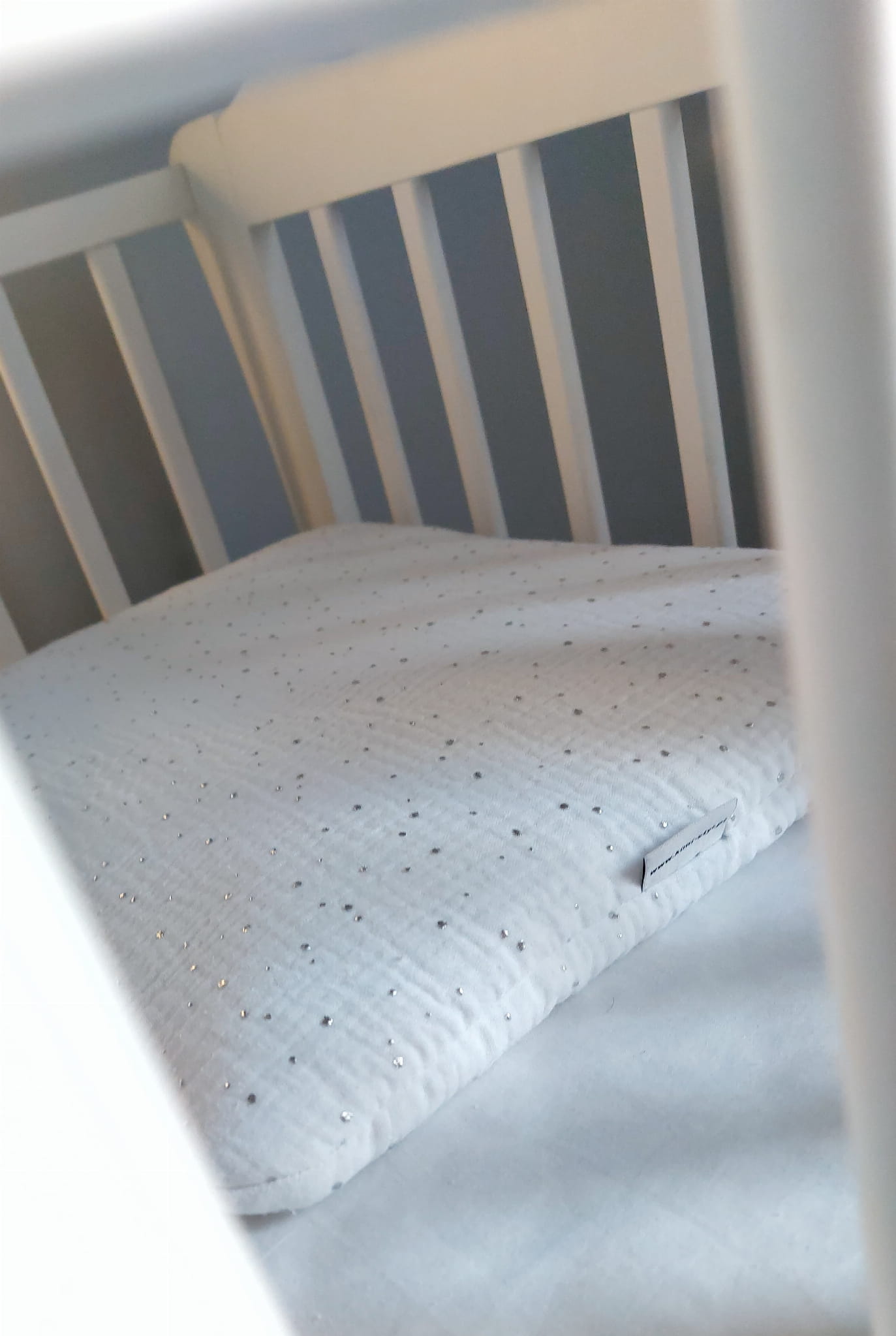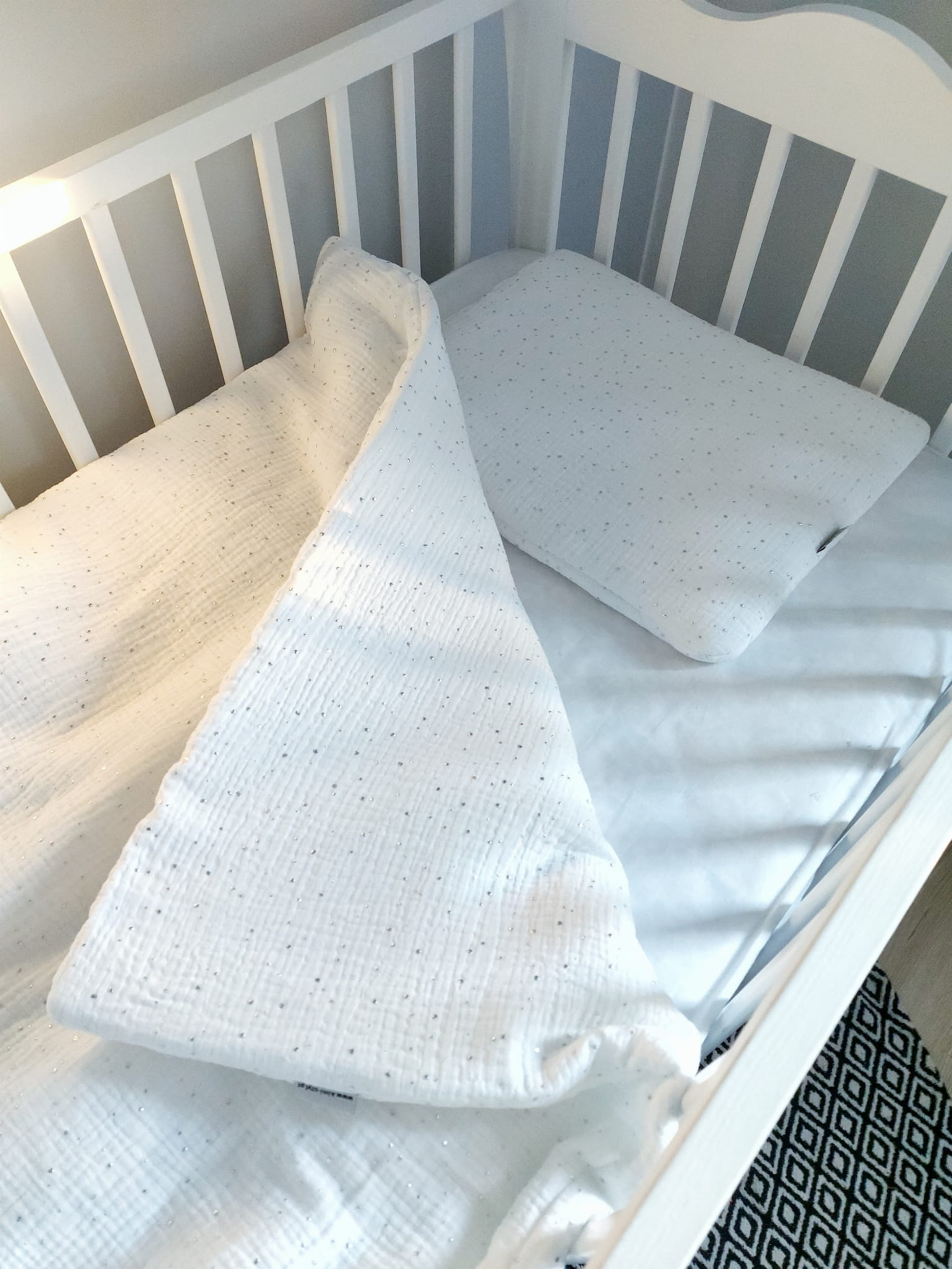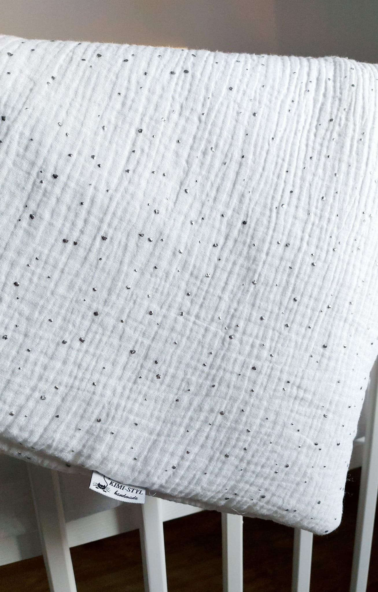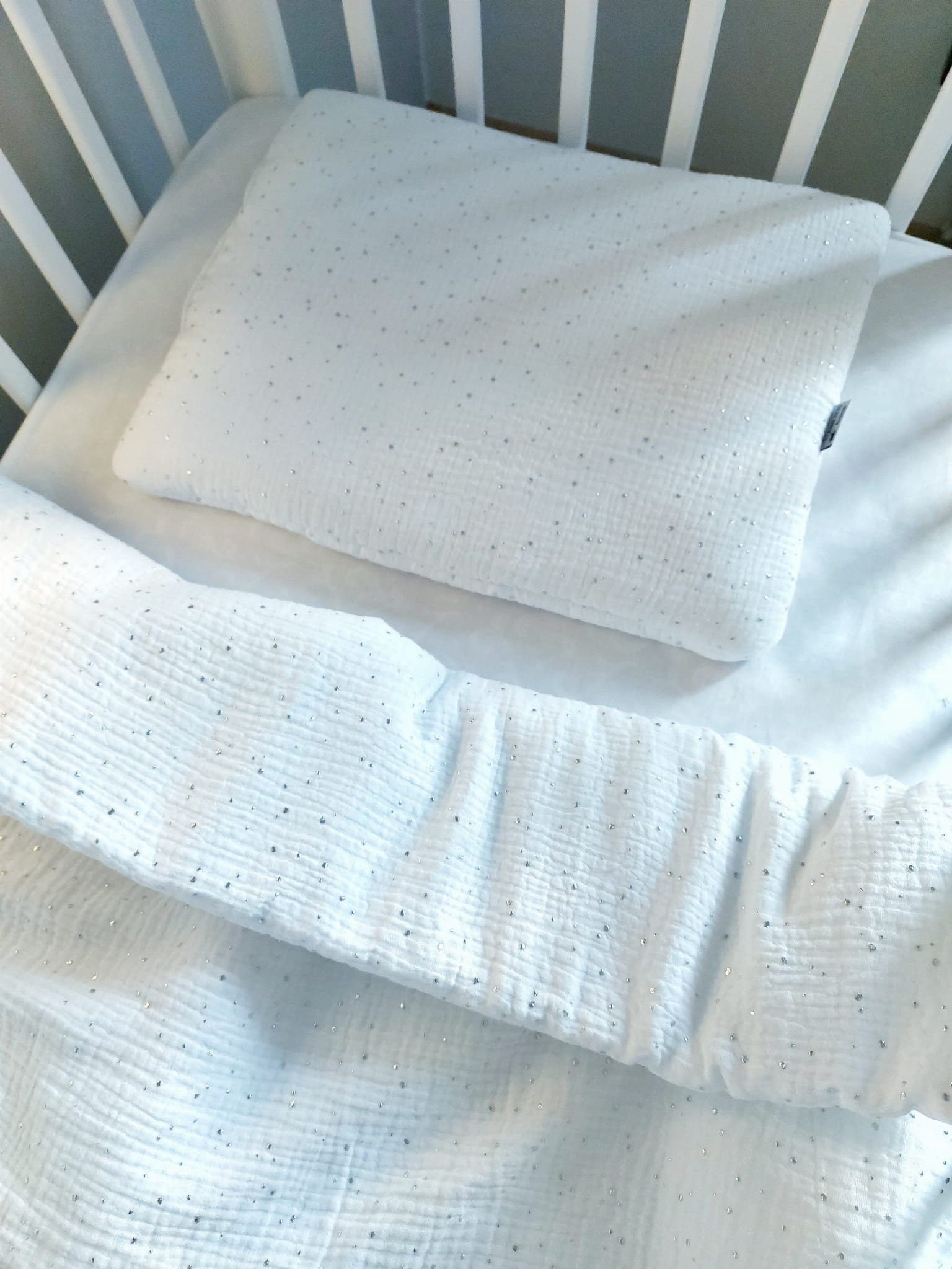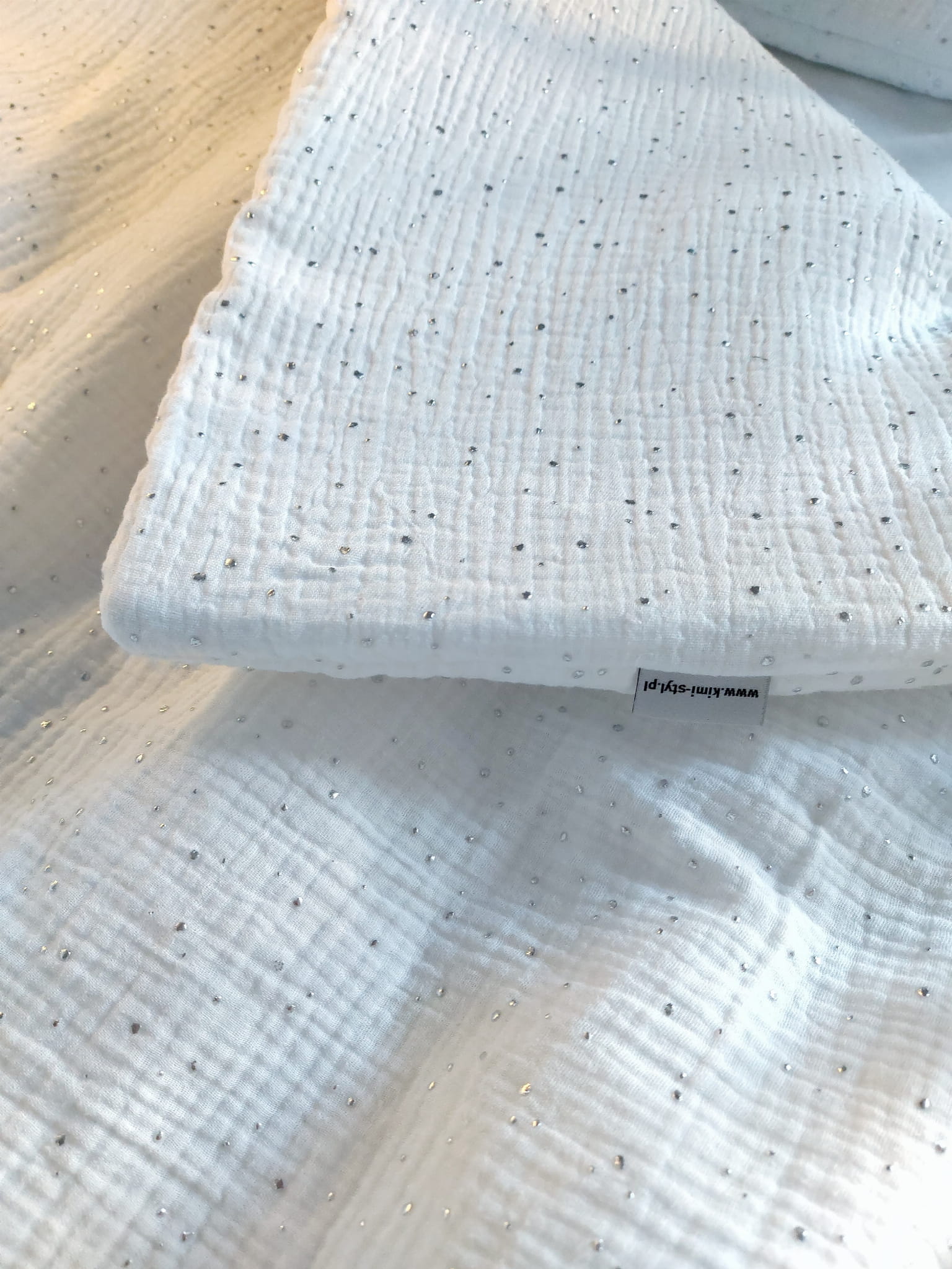 Pościel muślinowa z wypełnieniem BIAŁA W SREBRNE KROPKI