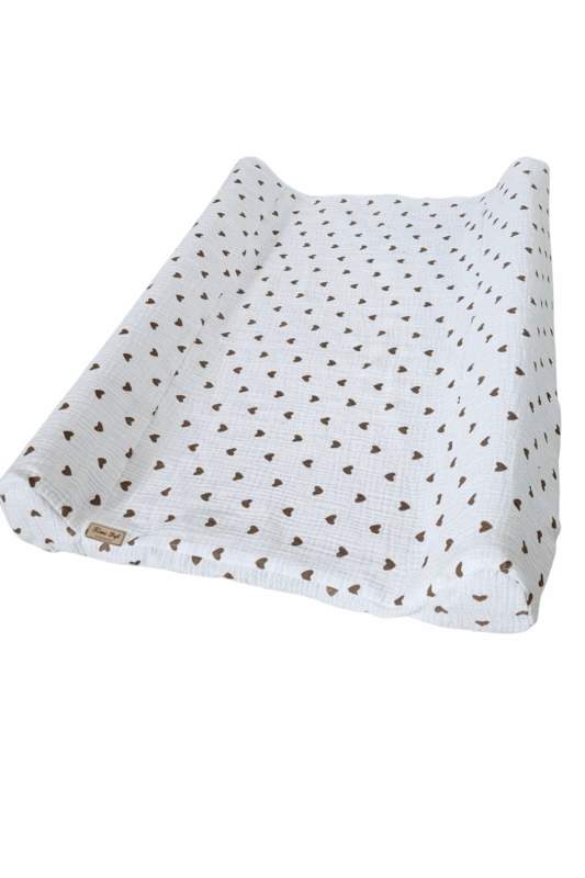 Prześcieradło na przewijak MUŚLIN BEŻOWE SERDUSZKA