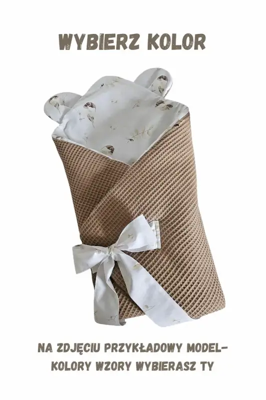 Z jednej strony wykonany z miękkiej, przewiewnej bawełny waflowej, z drugiej z gładkiej, przyjemnej w dotyku bawełny. Taki duet materiałów gwarantuje komfort termiczny i delikatność dla wrażliwej skóry niemowlęcia. Rożek ma słodkie uszka.
