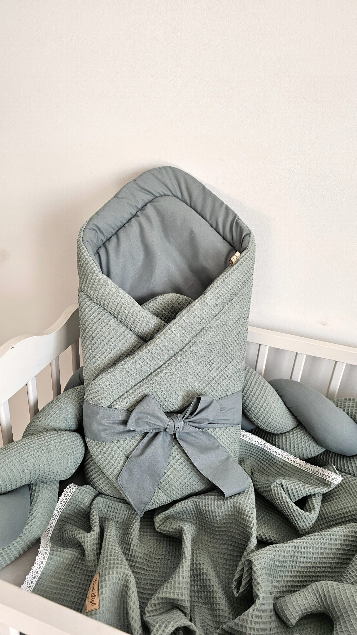 Miękki i przytulny rożek niemowlęcy uszyty z 100% bawełny waflowej z certyfikatem OEKO-TEX® Standard 100, bezpiecznej dla delikatnej skóry dziecka już od pierwszych dni życia.
