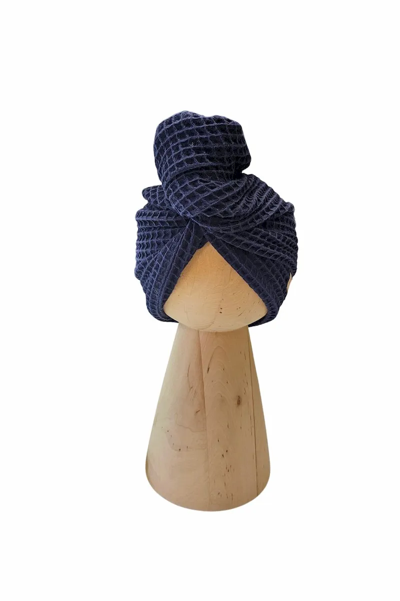 Turban do włosów z bawełny waflowej – lekki, delikatny i chłonny GRANAT