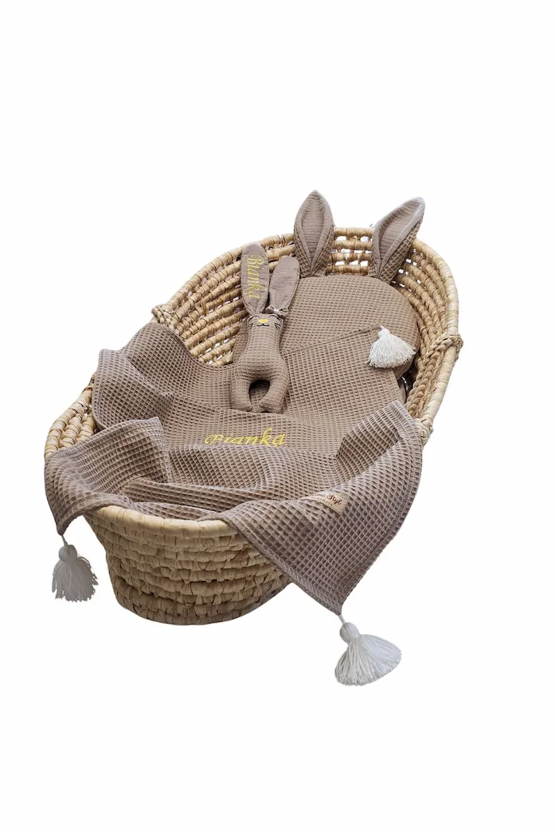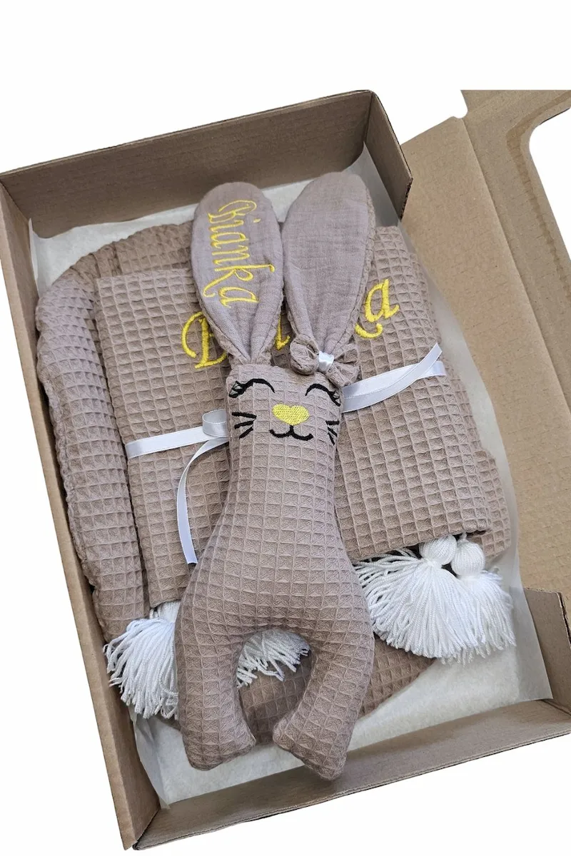 Nasz bestsellerowy zestaw wafelkowy to absolutny "must-have" każdej wyprawki. Łączymy w nim najwyższą jakość bawełny, uroczy design i osobisty akcent w postaci haftu. To nie tylko praktyczne akcesoria, ale przede wszystkim niezapomniana pamiątka na lata.