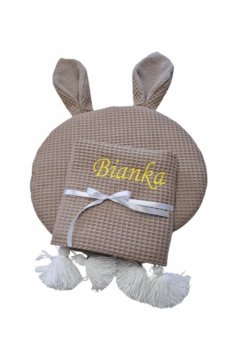 Zestaw Wafelkowy: Kocyk z chwostami, Poduszka Królik, Przytulanka Tuliś - BRĄZOWY