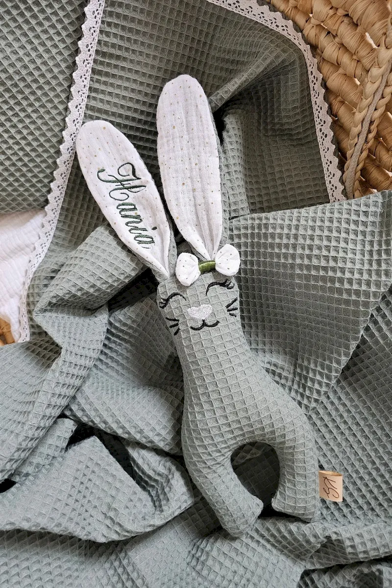 Ważne: W uwagach do zamówienia wpisz imię, które mamy wyhaftować na Tulisiu. Jeśli wybrałeś opcję dodatkowego haftu na kocyku, podaj również dane do metryczki.