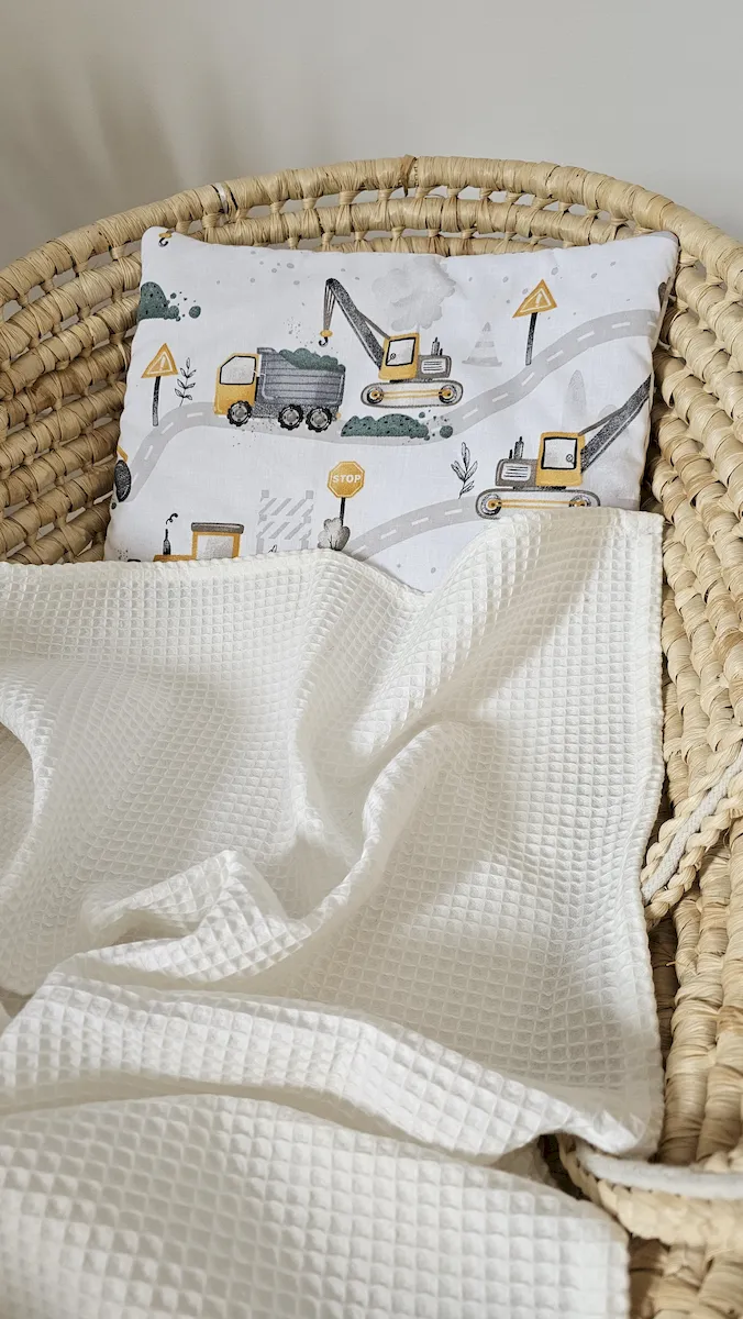 Nasz personalizowany zestaw to must-have każdej wyprawki! Składa się z miękkiego otulacza-kocyka wafelkowego oraz poduszki standard(prostokątnej) Naturalna bawełna, ręczne wykonanie i możliwość haftu sprawiają, że to nie tylko praktyczny produkt, ale także piękna pamiątka na lata!