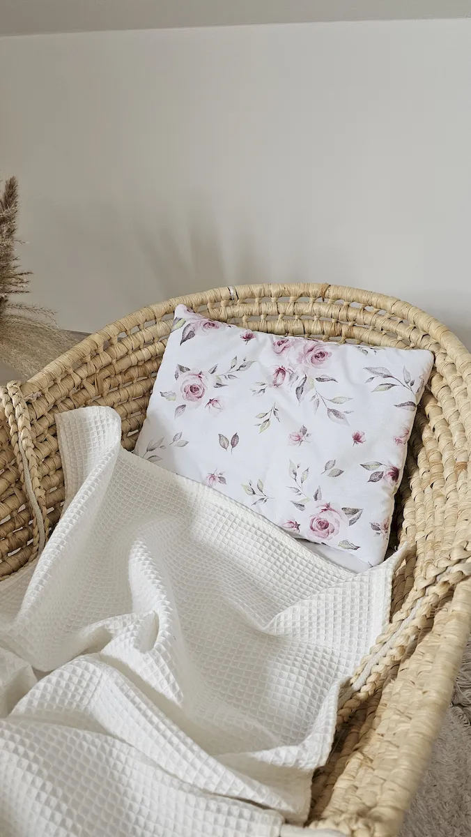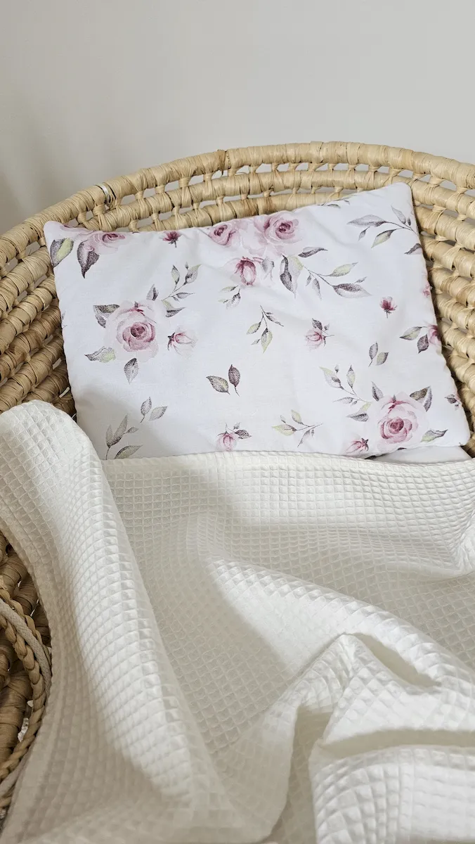 Zestaw kocyk wafelkowy z poduszką prostokątną ROMANTYCZNE RÓŻE/ŚMIETANKA