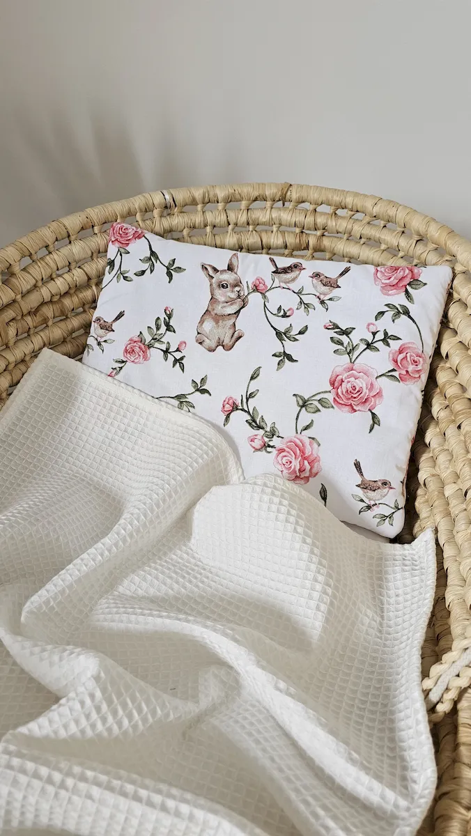 Zestaw kocyk wafelkowy z poduszką prostokątną RÓŻANY OGRÓD/ŚMIETANKA