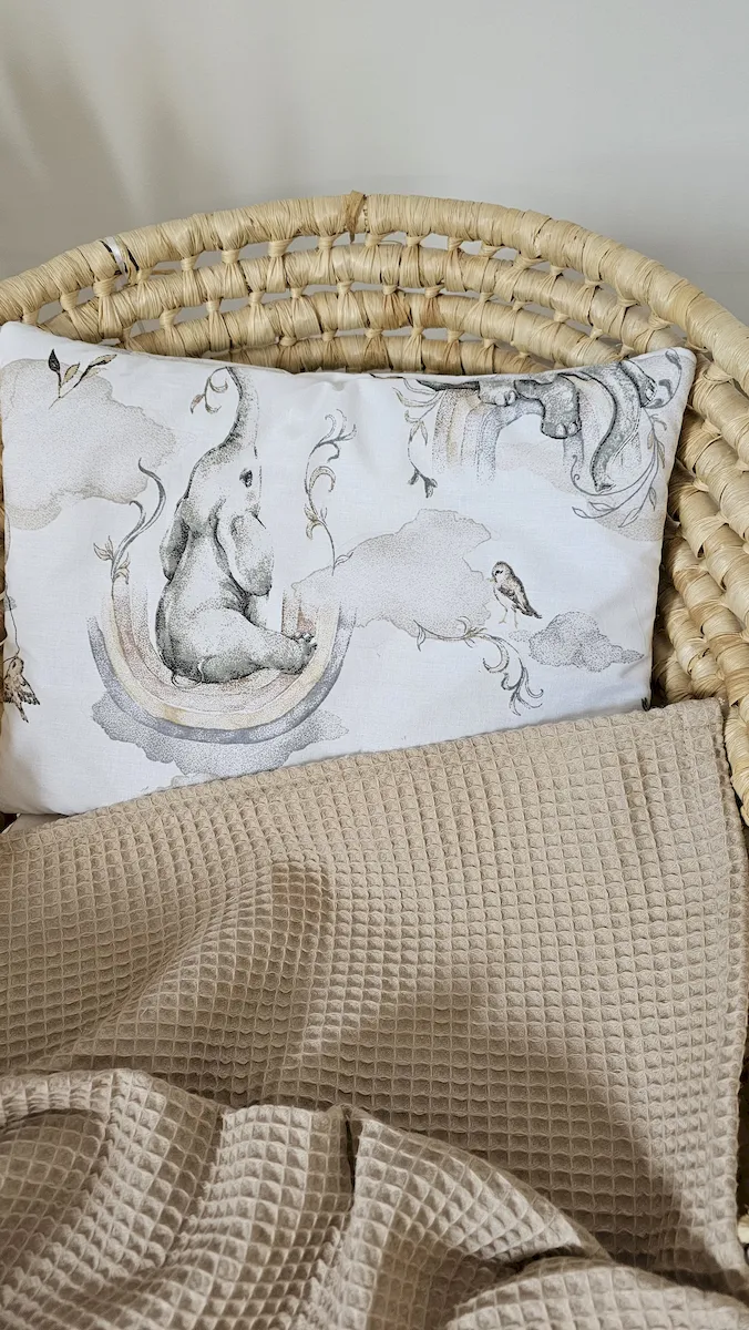 Zestaw kocyk wafelkowy z poduszką prostokątną SŁONIK DUMBO/BEŻ