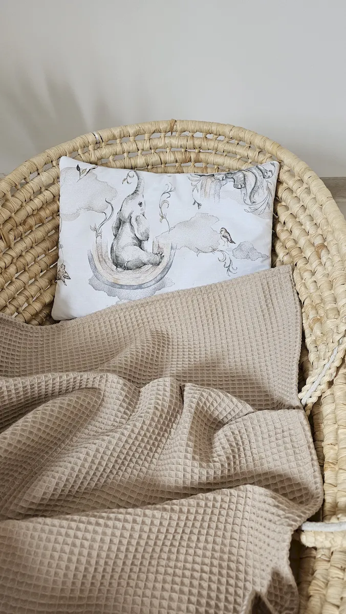 - Jako lekkie okrycie do łóżeczka, wózka, kosza Mojżesza
