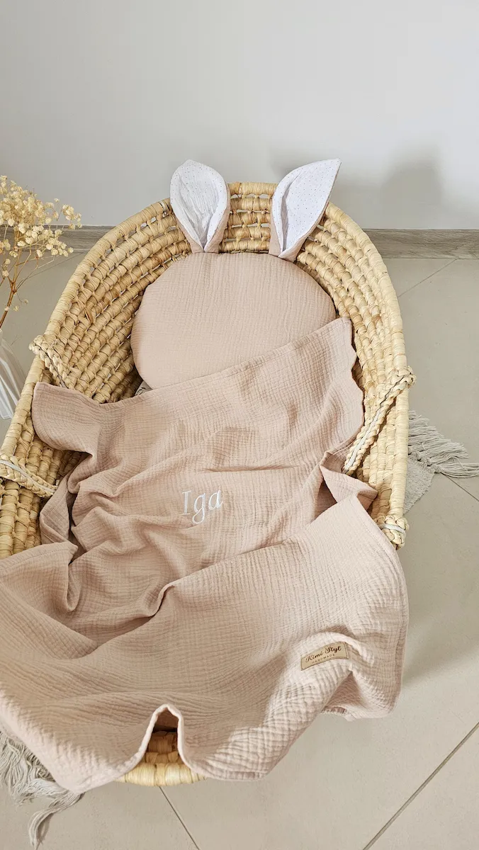 Zestaw otulacz muślinowy z chwostem + poduszka KRÓLIK BEŻOWY