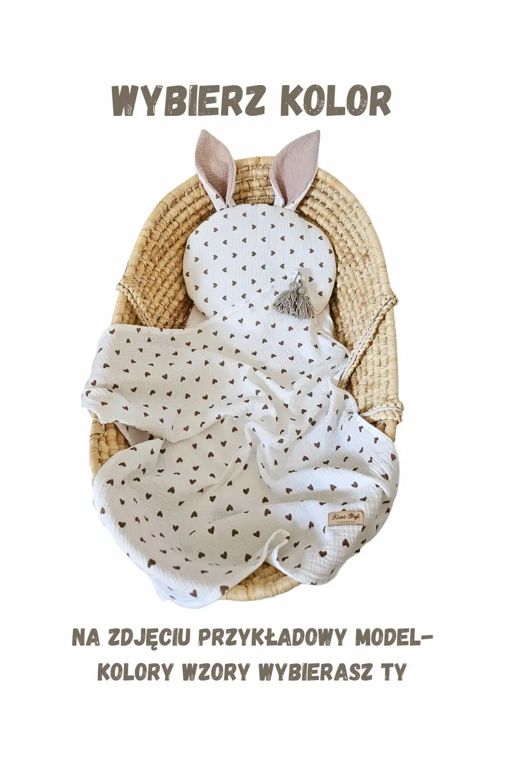 Zestaw otulacz muślinowy z chwostem + poduszka KRÓLIK KOLORY