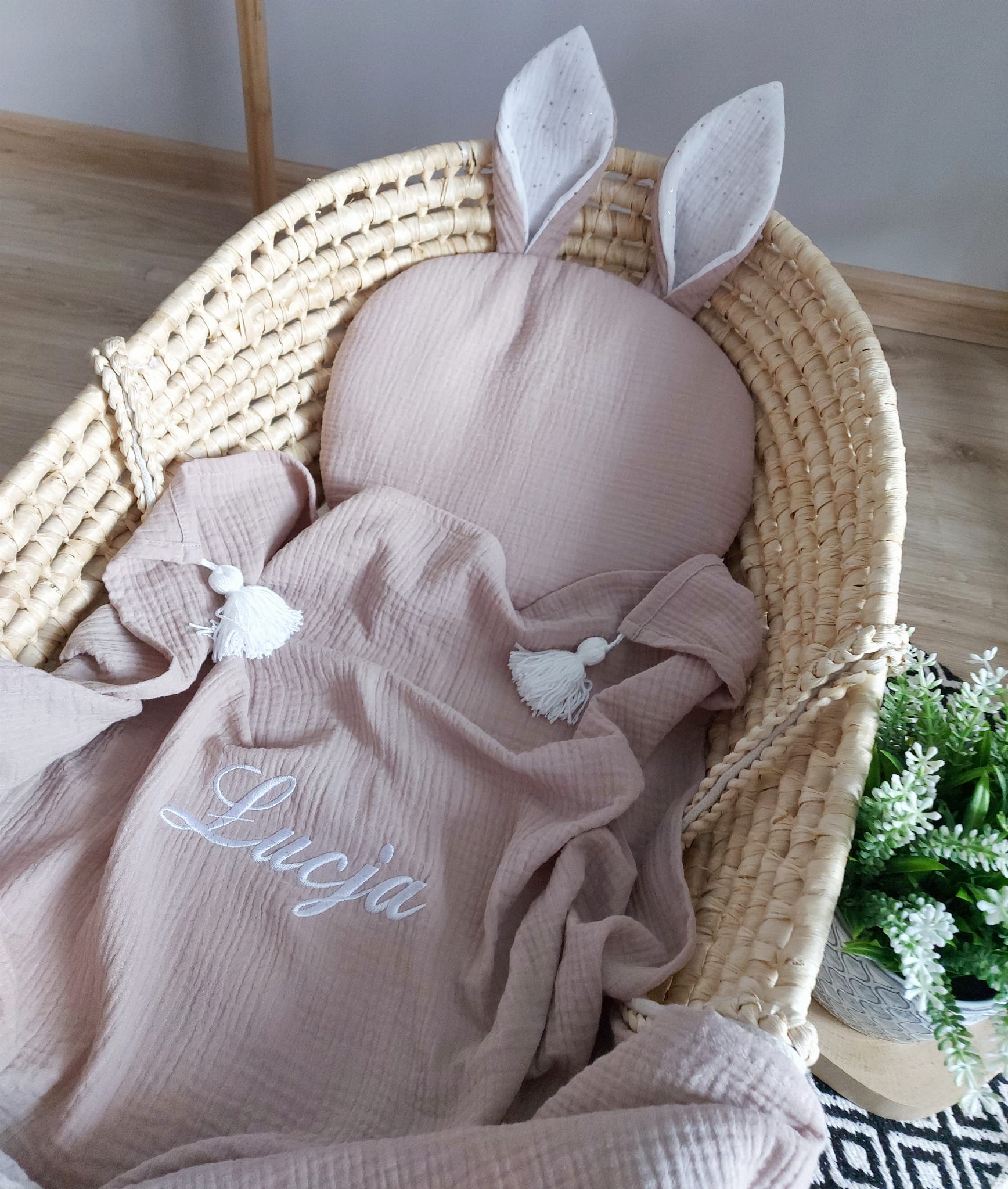Otul swoje dziecko w coś wyjątkowego – nasz otulacz muślinowy z ręcznie robionymi chwostami i poduszka królik to kwintesencja delikatności i wygody. Wykonany z pojedynczej warstwy muślinu, jest niezwykle lekki, przewiewny i miękki, co czyni go idealnym wyborem od pierwszych dni życia.