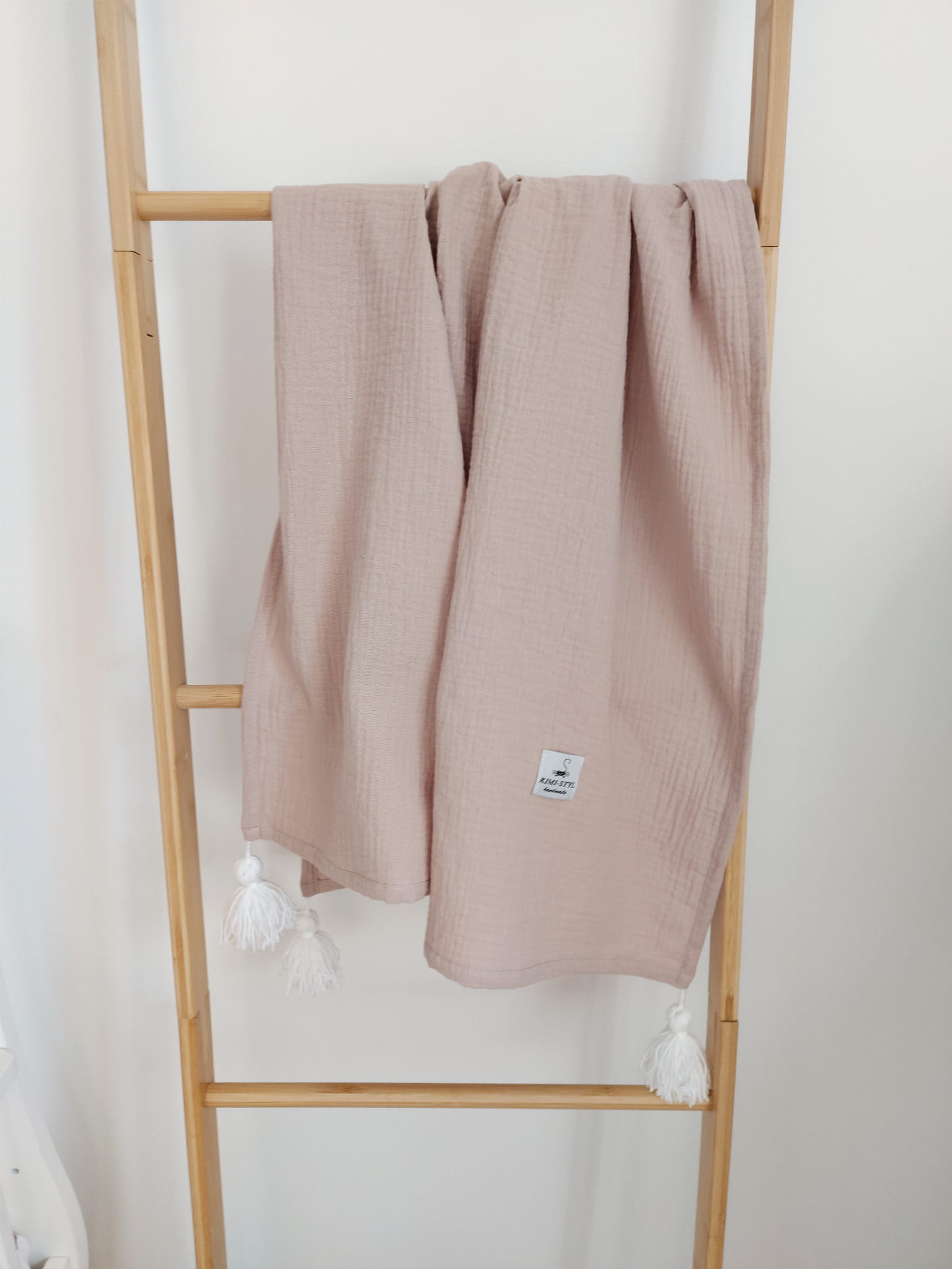 Otulacz został wykonany z najwyższej jakości muślinu, czyli marszczonej, kreszowanej bawełny, która jest niezwykle miękka i delikatna. Dzięki swoim właściwościom doskonale przepuszcza powietrze, pozwalając skórze oddychać i zapobiegając przegrzewaniu.