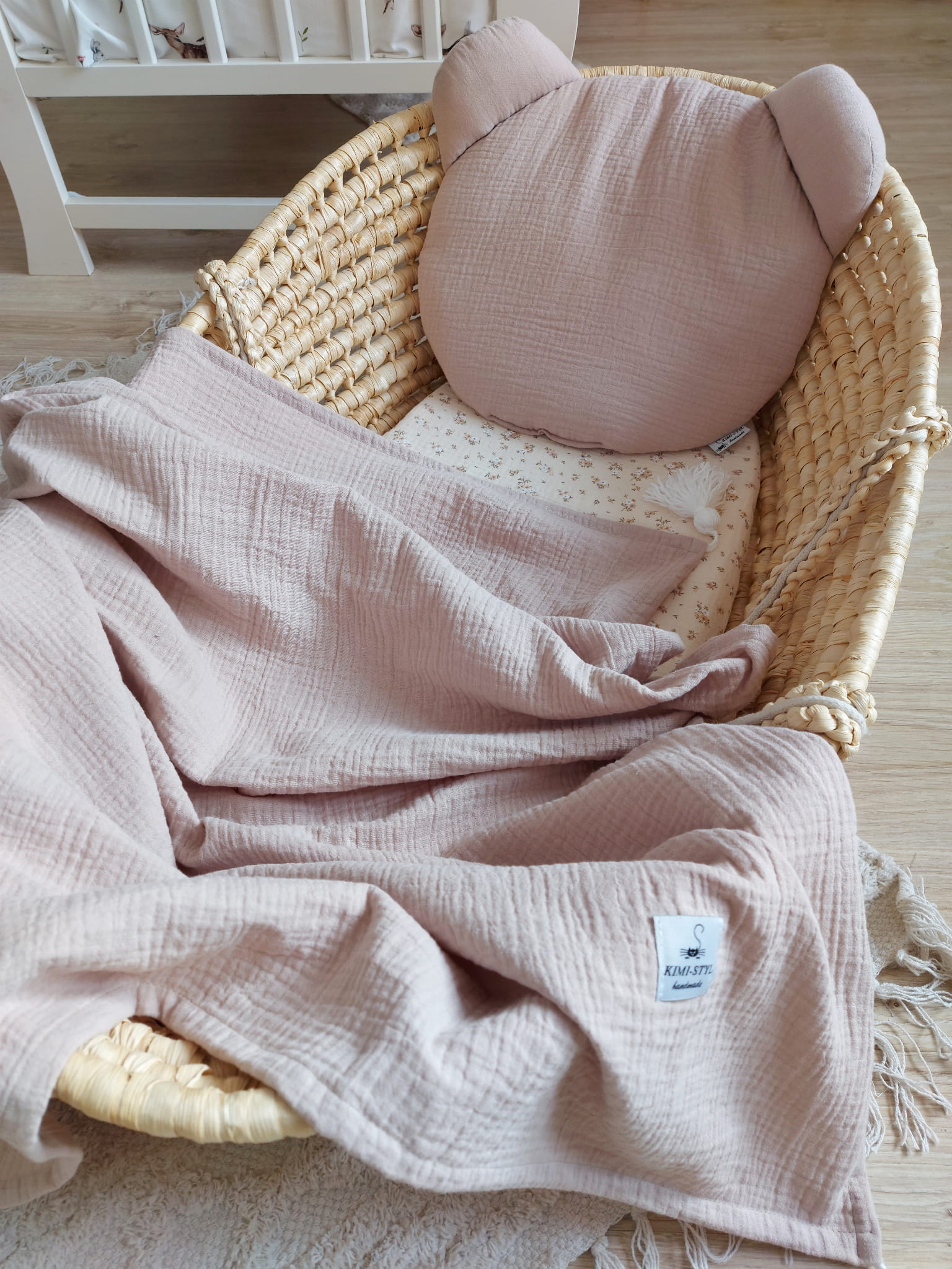 Podaruj swojemu maluszkowi komfort, delikatność i bezpieczeństwo dzięki wyjątkowemu zestawowi: otulacz muślinowy z ręcznie robionymi chwostami oraz urocza poduszka w kształcie misia. To must-have w każdej wyprawce!