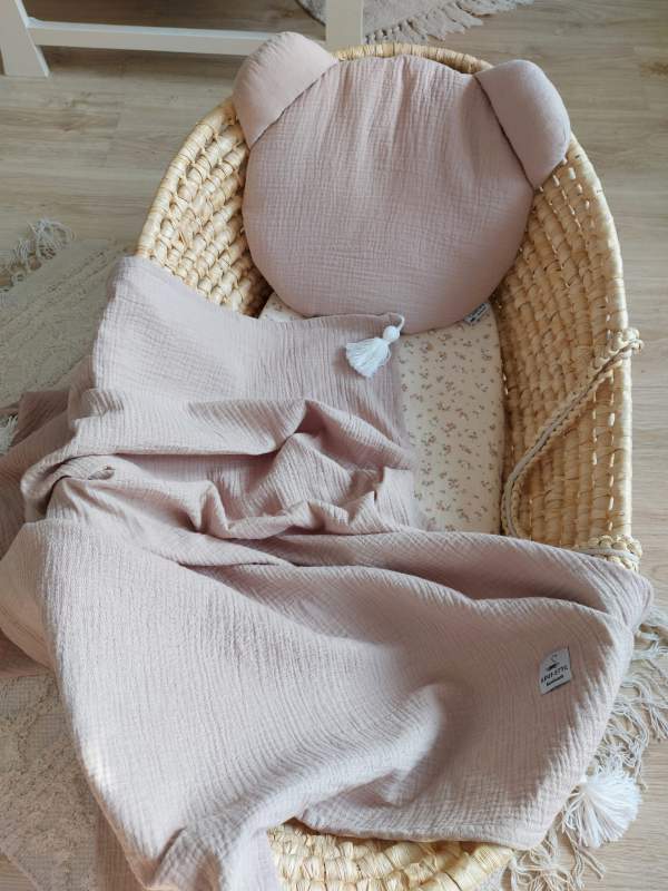 Zestaw otulacz muślinowy z chwostem + poduszka MIŚ BEŻOWY